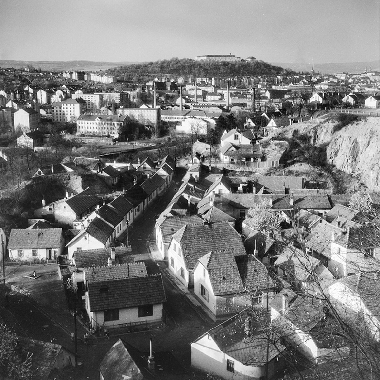 Ze sbírek MuMB, inv. č. E 16.643/21.493 - Karel Otto Hrubý, pohled na Kamennou kolonii z jihozápadu, květen 1955
