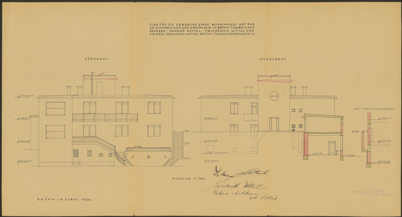 1932 – Architekt Heinrich Blum dokončil v únoru projekt ke stavbě vily Wittal