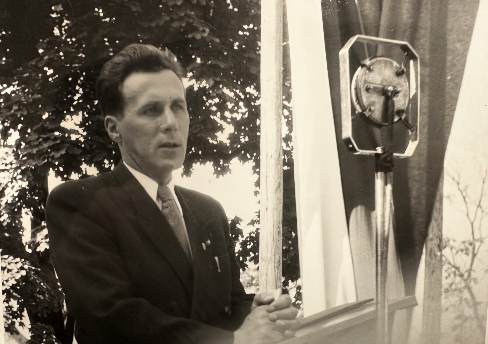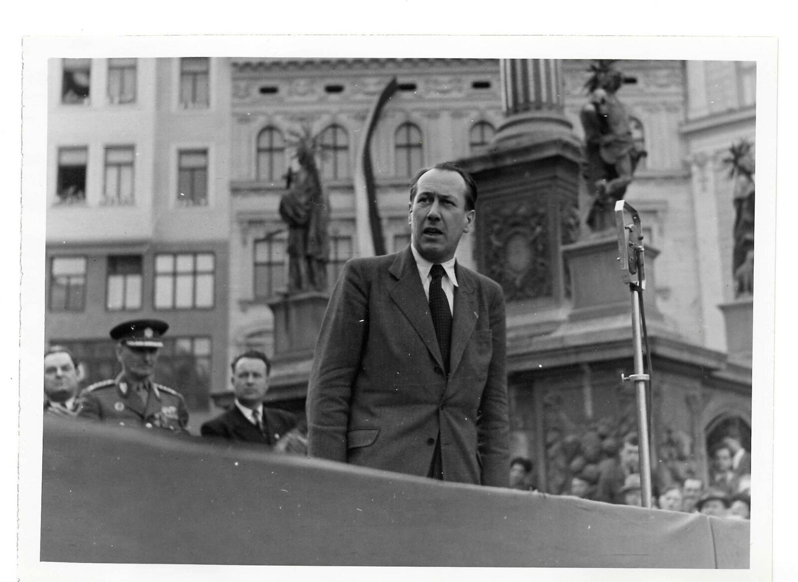 14. František Píšek řeční na náměstí Svobody, 1945–1947. František Píšek žil ve vile v letech 1945–1948. Moravské zemské muzeum, Historické oddělení, inv.č. T 2713