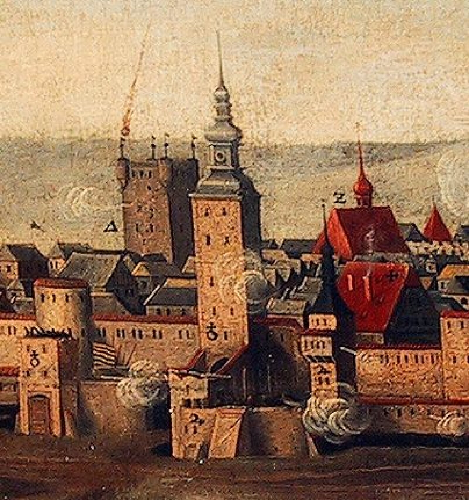 Obr. 3 – Měnínská brána na obraze z roku 1645.
