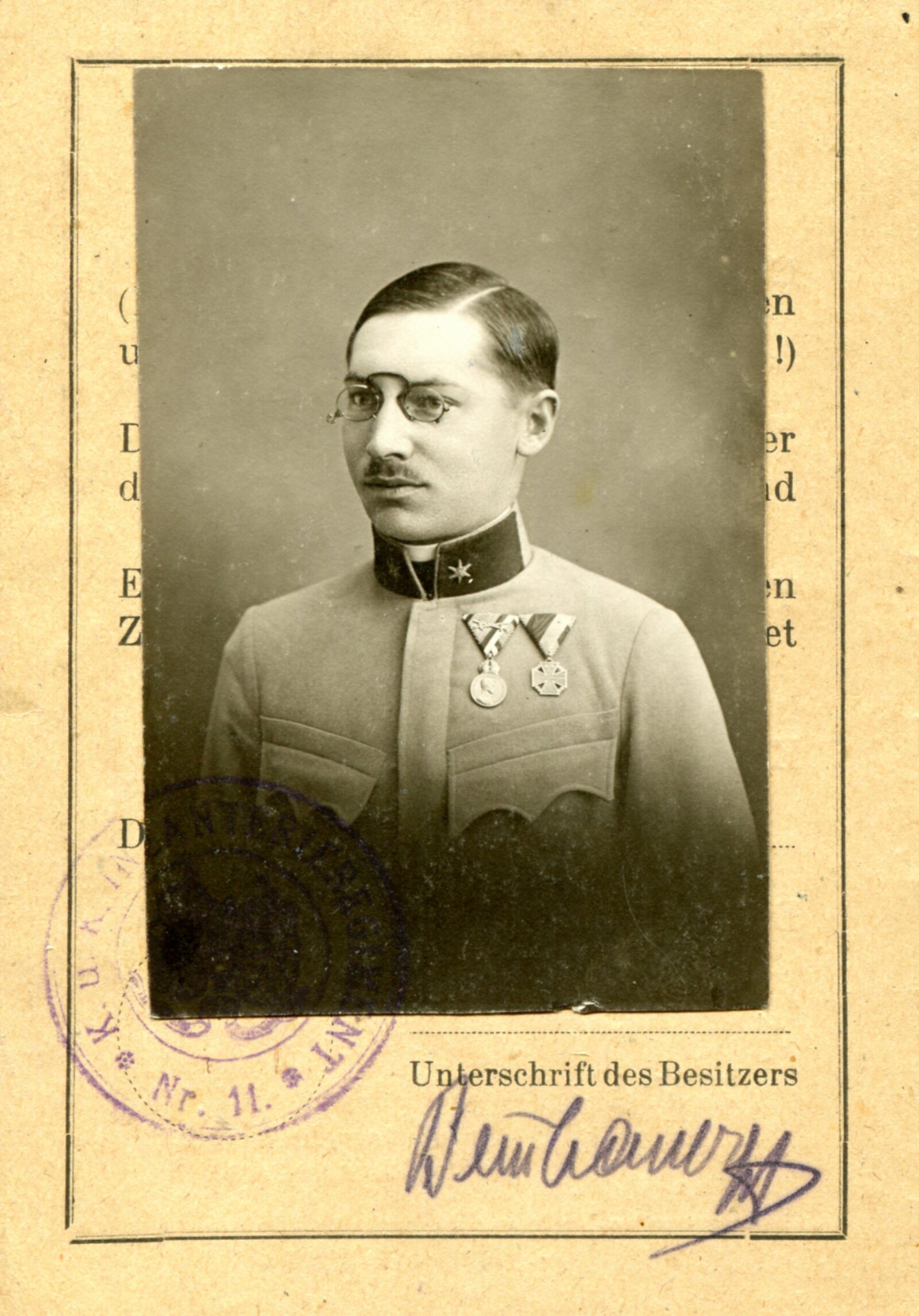 01: Fotografie Viléma Beinhauera z vojenského průkazu z roku 1918