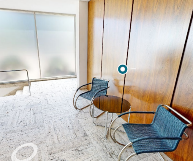 The seating furniture collection belongs to the design icons of the 20th century. Mies's collaborators Lilly Reich and Sergius Ruegenberg were heavily involved in many of the designs. The large floor-to-ceiling windows of the "glass room" provide a perfect connection between the interior and exterior. They are oriented towards the garden and the original electric mechanism allows them to be recessed up to floor level.