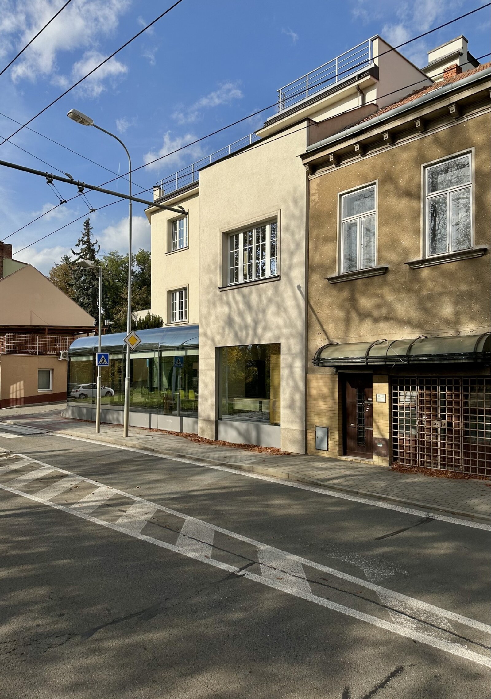 O podobě tohoto domu, vystavěného kolem roku 1883 Simonem Haasem, si můžeme učinit představu z panoramatické fotografie ulice Hlinky z roku 1911. Jak vidno, jednalo se o jednopatrový dům s neorenesanční fasádou, situovaný na nároží ulic Hlinky a Vinařské, s vchodem umístěným v pravé ose domu z ulice Hlinky.