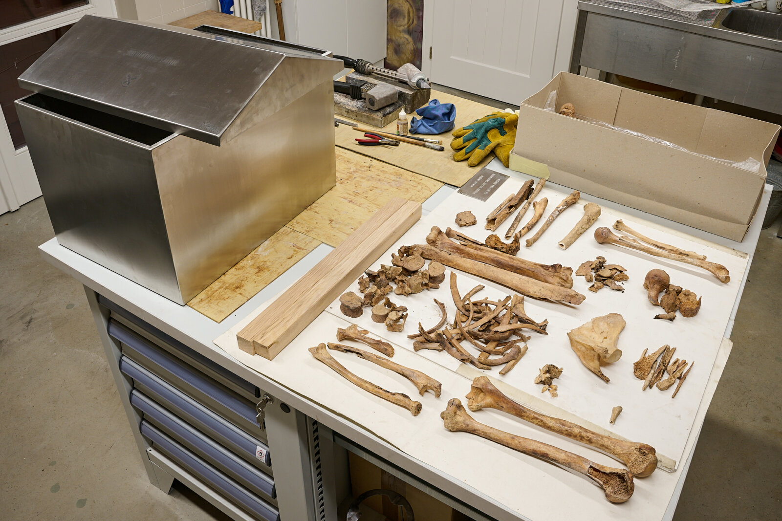 Protože v nálezu byly i kosti několika dalších jedinců a bylo rozhodnuto uložit vše společně, byly Jindřichovy ostatky odděleny nerezovým pletivem a následně byla schránka zaletována. To by mělo zajistit dokonalé zachování stavu kosterních fragmentů při případném opětovném vyzvednutí a dalším průzkumu v budoucnosti.