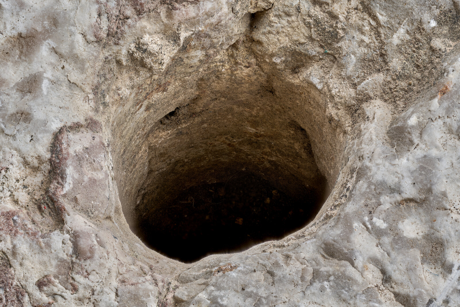 Na určení materiálu se podílel geolog Mgr. Tomáš Turek z Moravského zemského muzea, který k patce uvedl: „Studovaný architektonický prvek nalezený v zahradě Arnoldovy vily je složen ze dvou různých horninových typů. Spodní podstavec je vytvořen z šedé vápencové a částečně křemenné brekcie neurčitého původu. Samotná patka, která je k podstavci připevněna nejspíše cementem, je vytvořena z pestře zbarveného (převážně narůžovělého, fialového a šedého) hlíznatého vápence. Tato hornina svým vzhledem nejvíce odpovídá křtinským vápencům z líšeňského souvrství Moravského krasu, ale nelze vyloučit i jiný původ. Vznik křtinských vápenců je kladen do svrchního devonu a spodního karbonu v prohlubujícím se moři. Jejich nejznámější výskyt s dřívější těžbou na obklady a jiné architektonické prvky se nachází u Křtin v bývalém a dnes již zarostlém „mramorovém lomu“. Materiál z tohoto lomu byl použit i na stavbu hlavního oltáře a kazatelny Santiniho poutního kostela Jména Panny Marie ve Křtinách.“