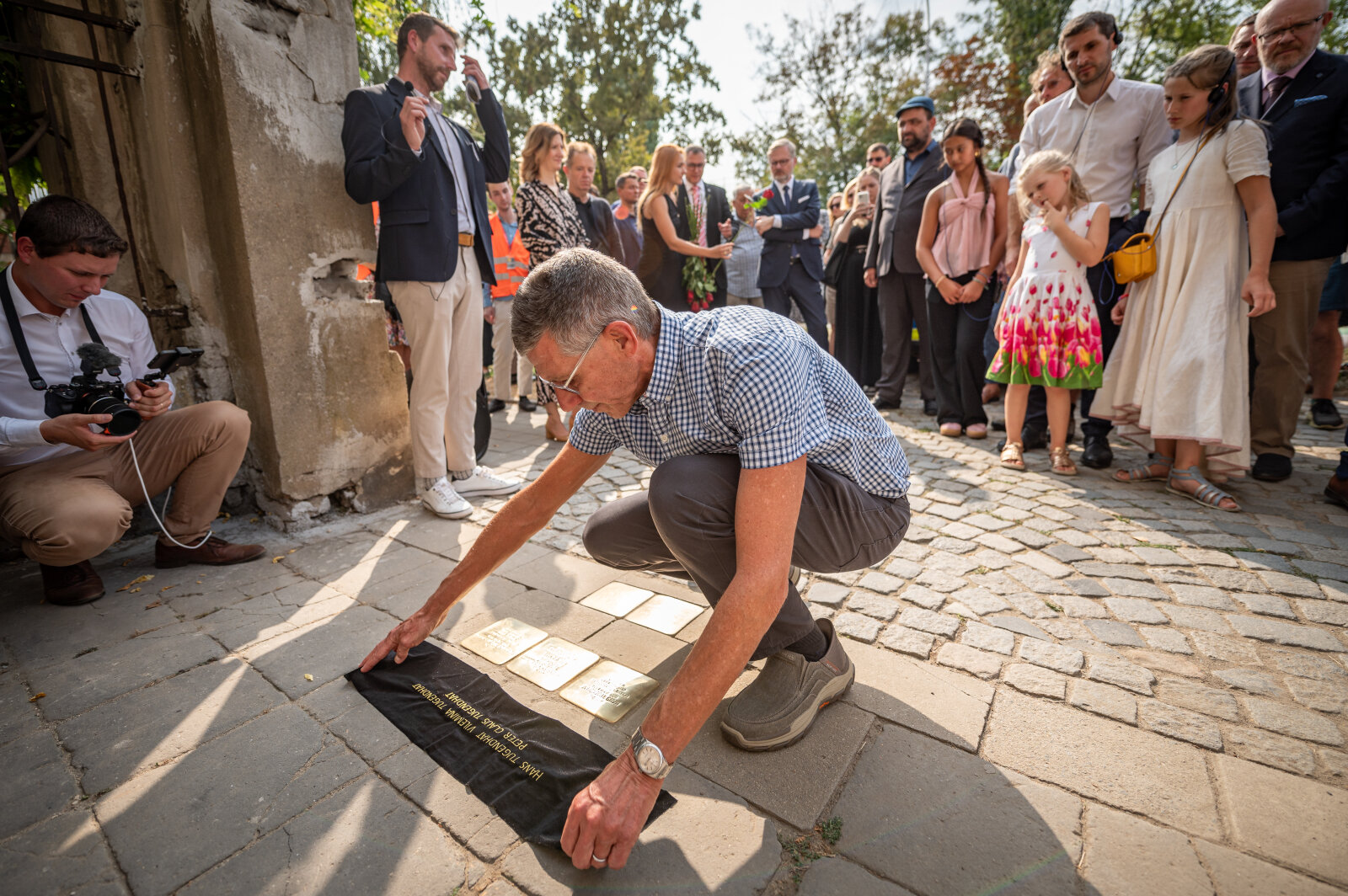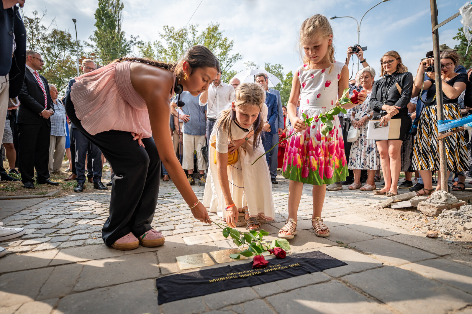 Pietní akt začal před Arnoldovou vilou na ulici Drobného 26, kde byly položeny tři kameny na památku Cecilie, Maxe a Friederiky Hože. Odtud se účastníci přesunuli k dalším domům na ulicích Drobného a Antonína Slavíka, kde byly umístěny další kameny, celkem jich bylo položeno dvacet tři. Závěrečný ceremoniál proběhl před vilou Tugendhat na Černopolní 45, kde byly položeny kameny za Fritze a Gretu Tugendhatovy a jejich děti. Významným momentem akce byla přítomnost potomků těchto rodin, mezi nimiž byli Daniela