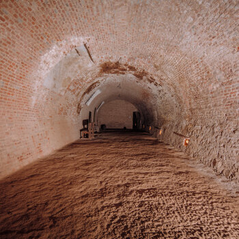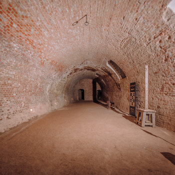 Ponurá a fascinující podzemní pevnostní chodba s autentickým historickým nábojem.