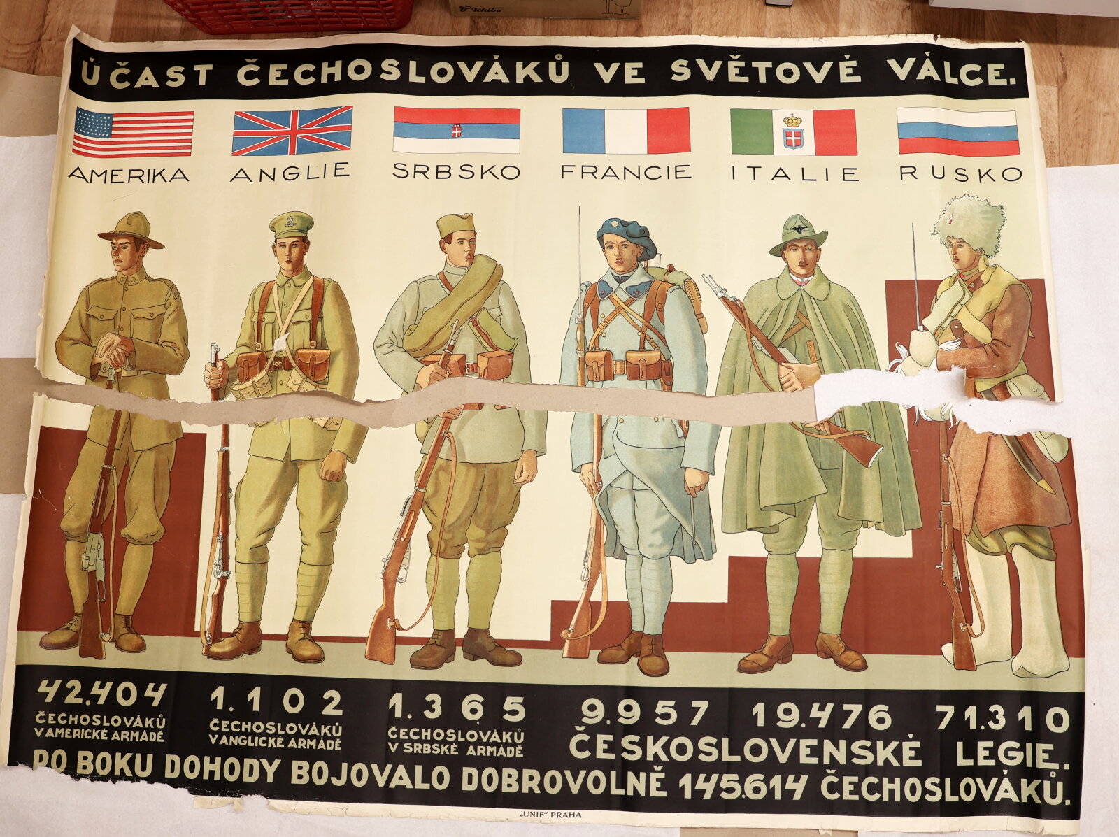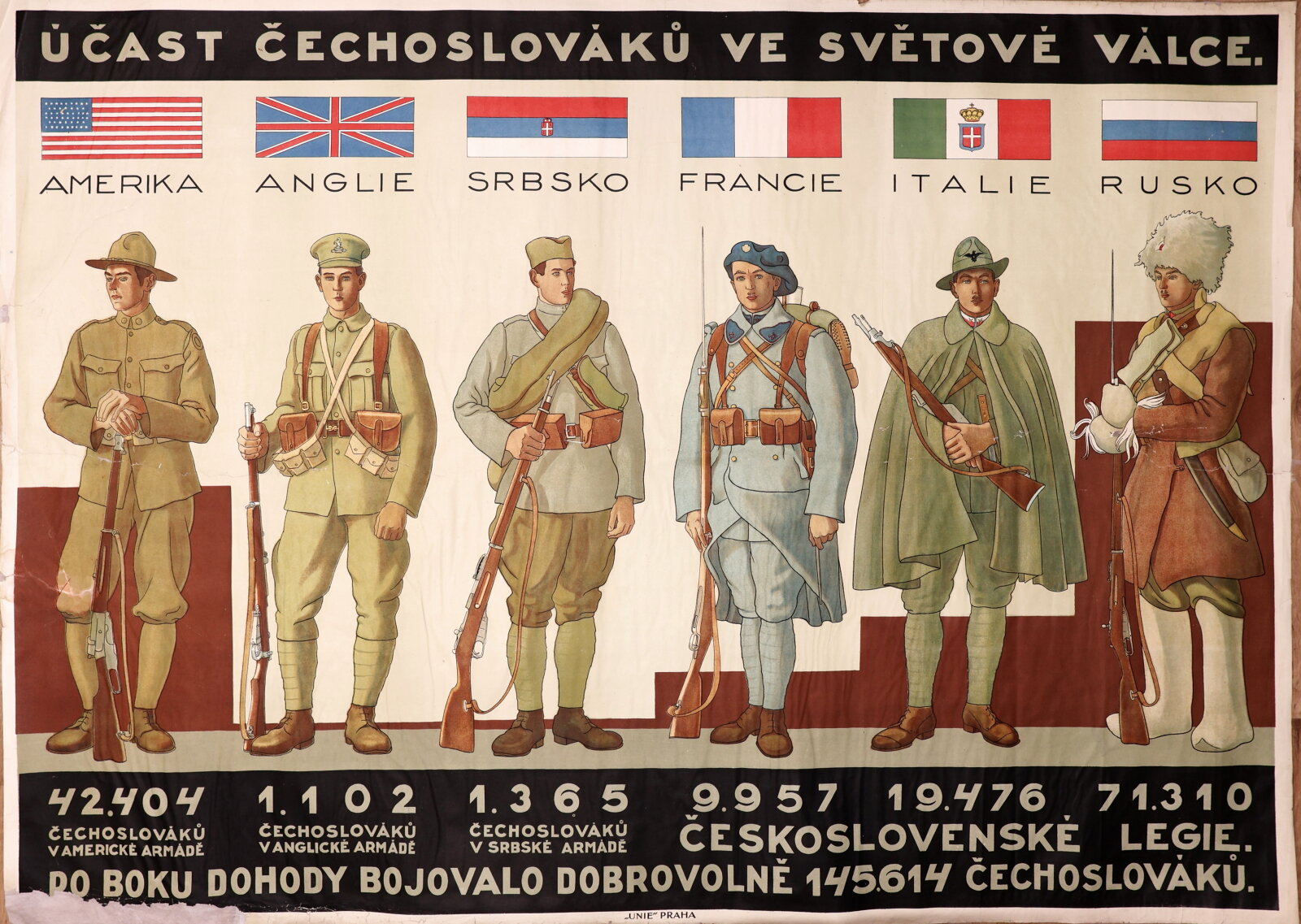 Zub času je neúprosný. Po více než sto letech od skončení první světové války a po návratu československých legionářů do vlasti vznikl tento propagační a informativní plakát o dobrovolnících bojujících na straně Dohody, tedy Francie, Ruska, Británie, Itálie, USA a dalších států proti Ústředním mocnostem Rakousko-Uhersku a Německu.