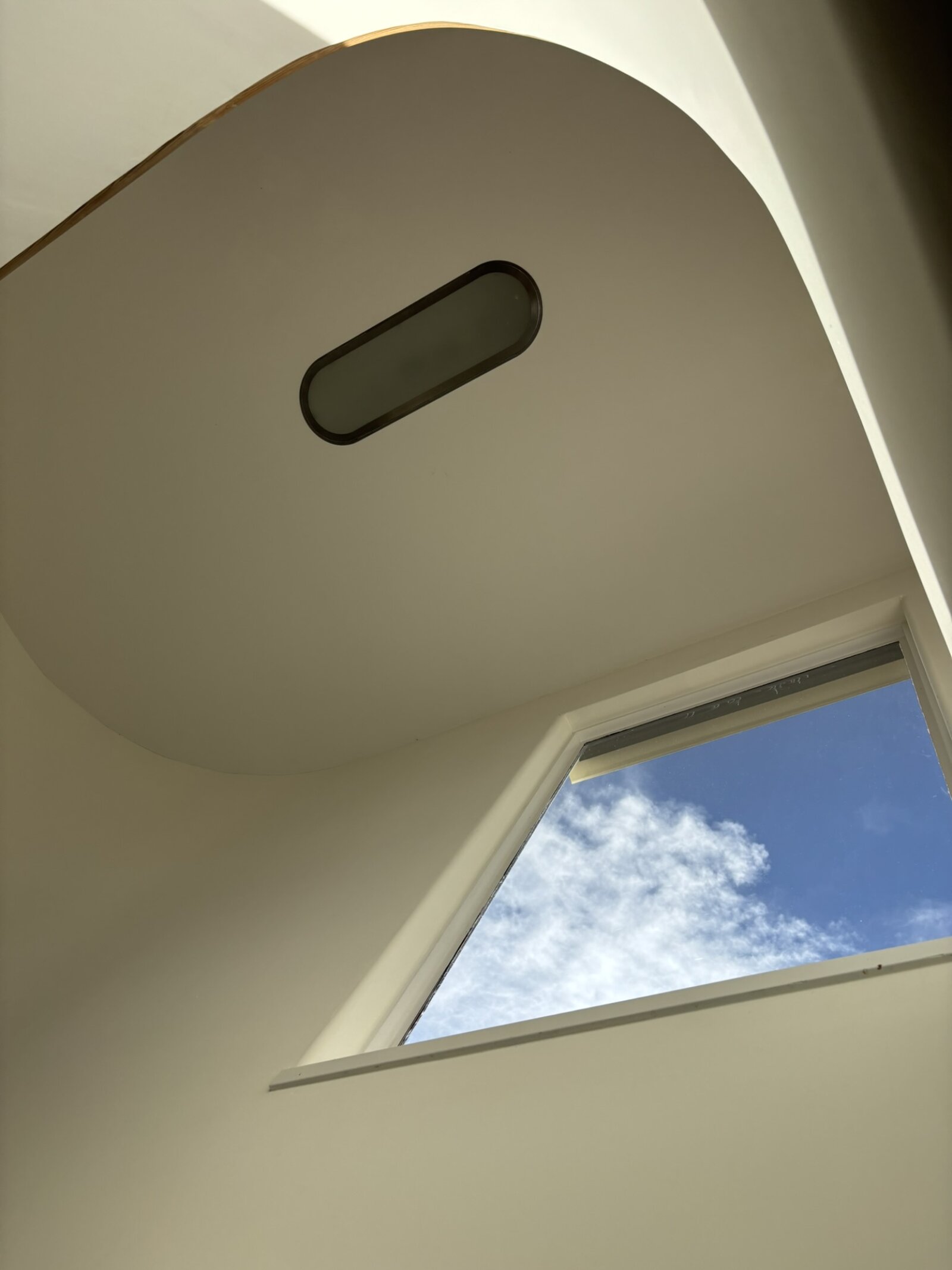 - Edris House – výhled z interiéru, E. Steward Williams, 1953–1954