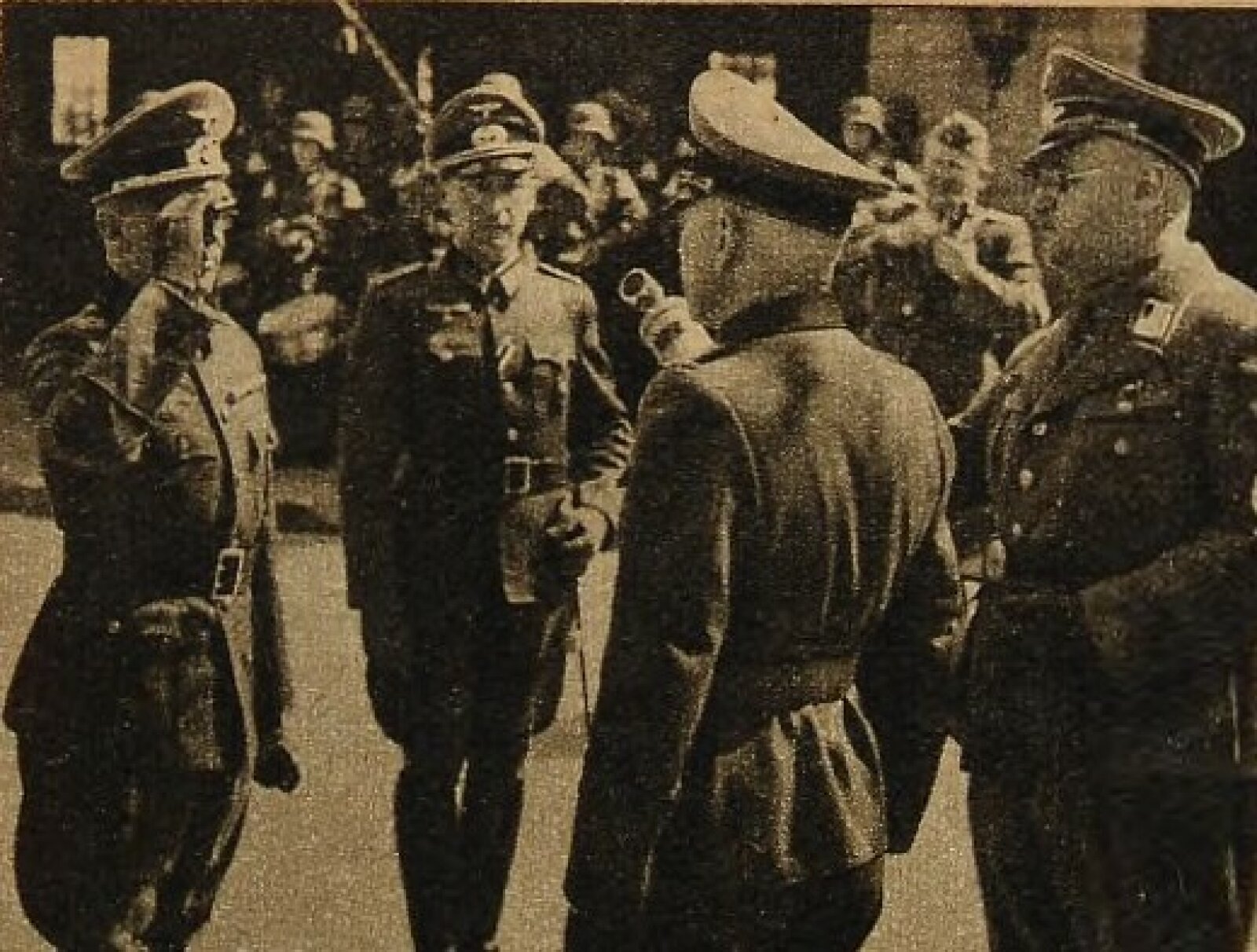 Obr. 1 : Dobový záběr reportáže ze slavnostního předání klíčů wehrmachtu. Zdroj: Unsere Wehrmacht im Protektorat, 23.9.1941.