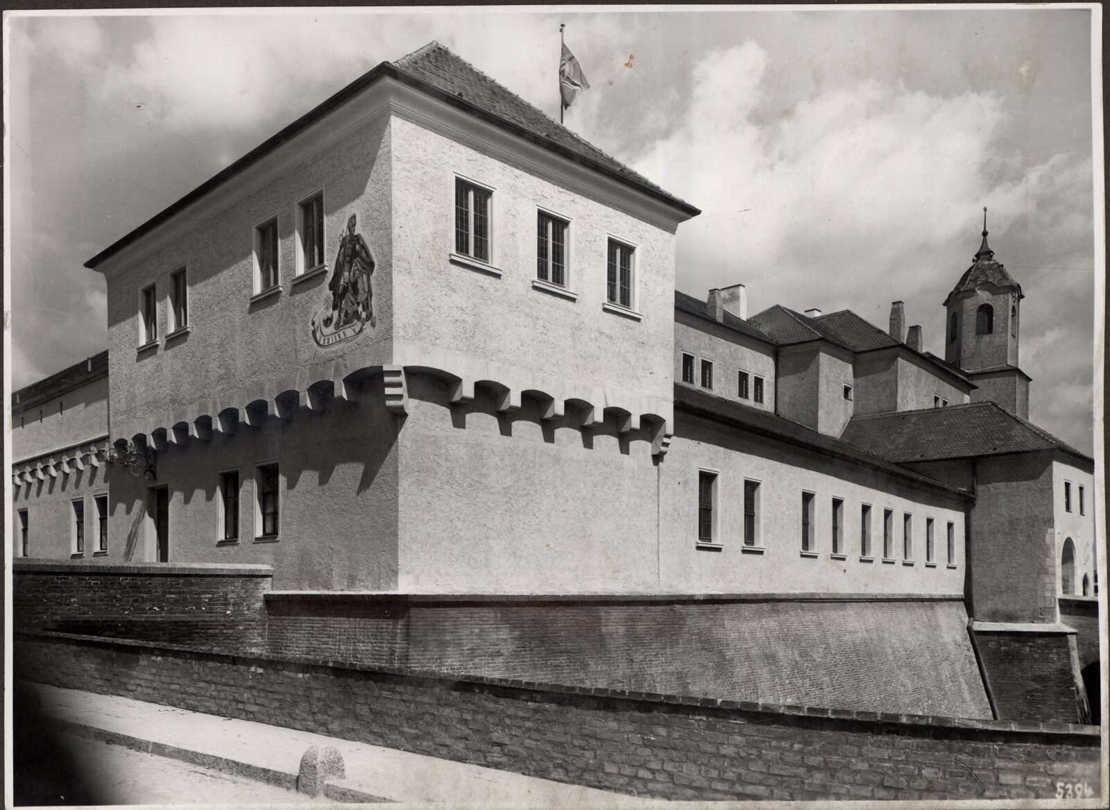 Obr. 2: Celkový pohled na východní křídlo hradu po rekonstrukci, vlevo nahoře Vlaštovčí hnízdo, 1941. Zdroj MuMB
