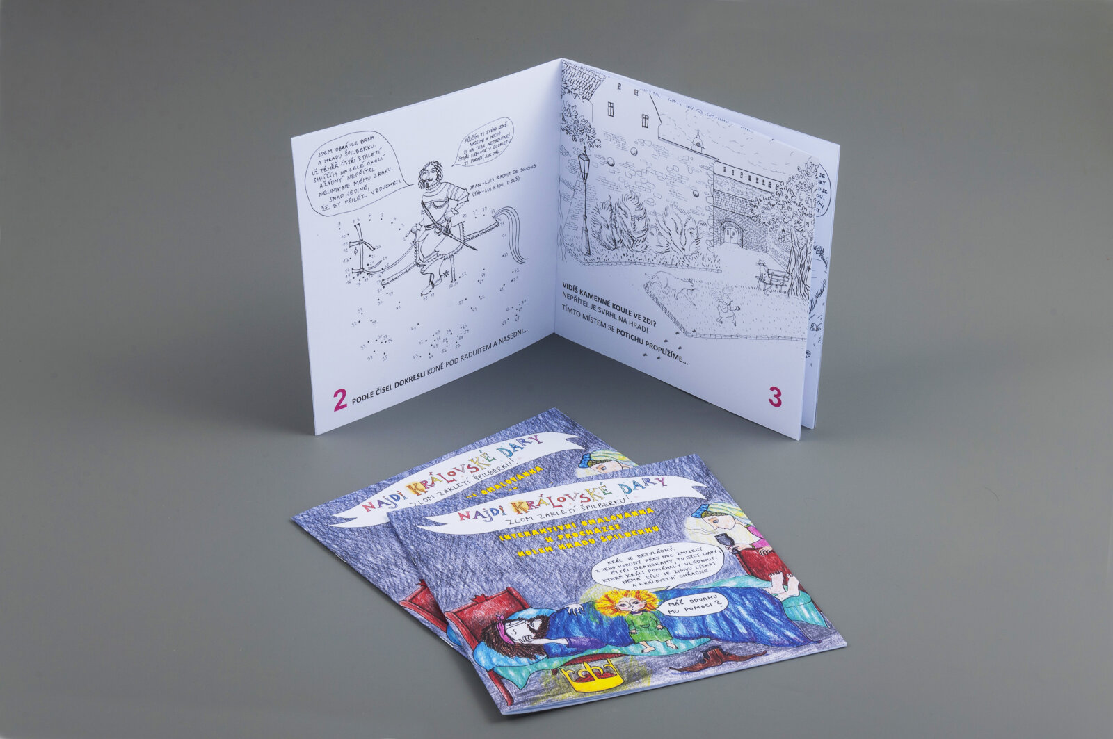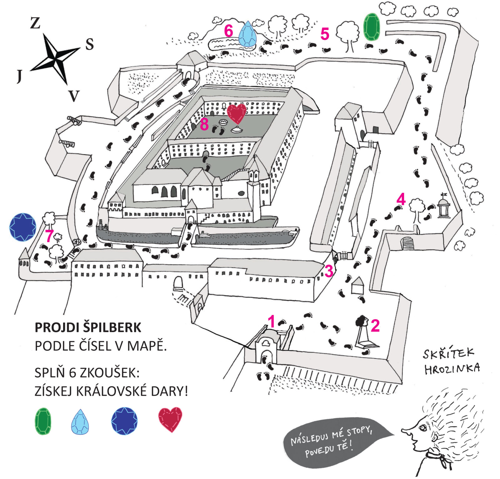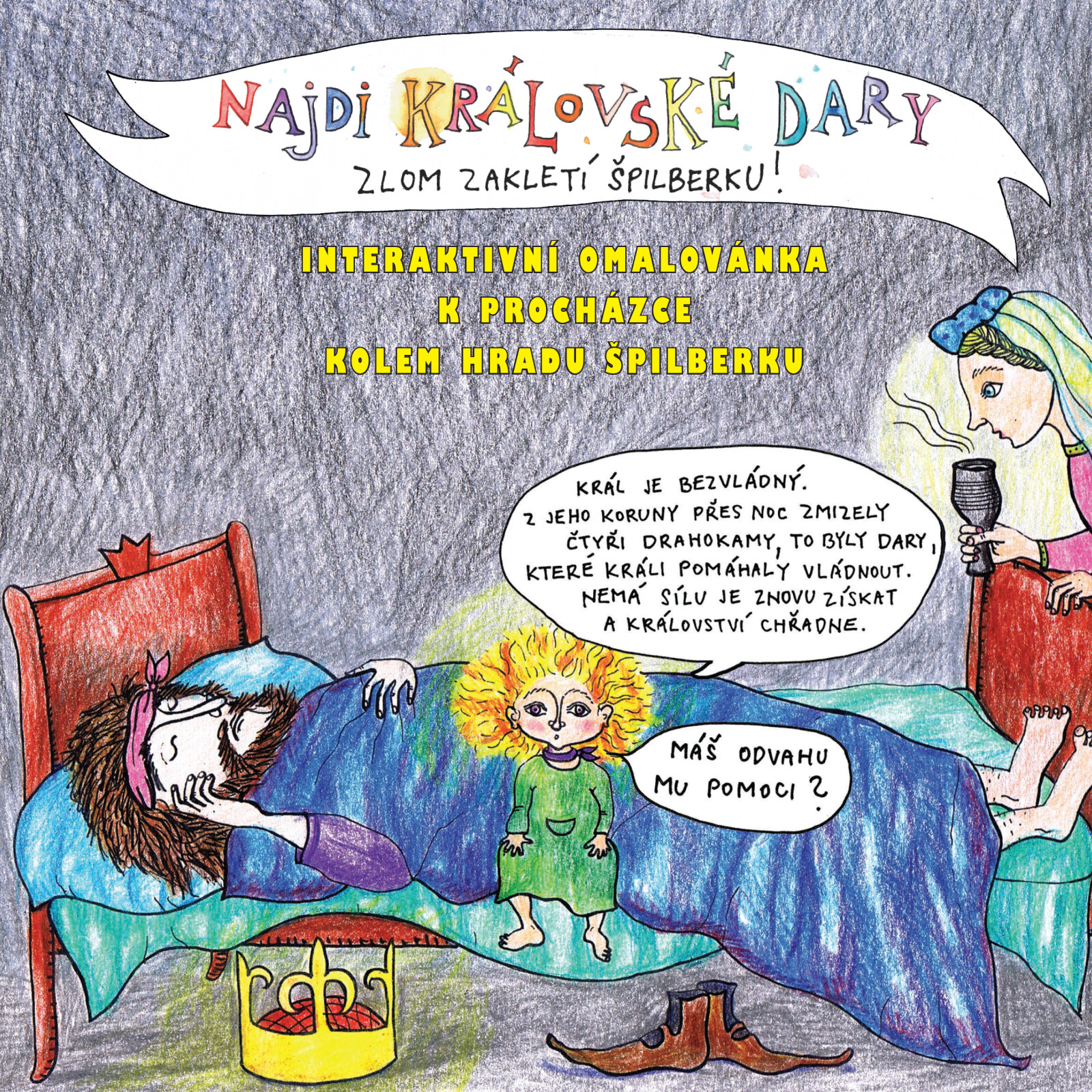 Pomůžete moudrému králi získat zpět ztracené královské dary? Interaktivní omalovánka k procházce kolem Špilberku je k zakoupení na pokladnách muzea. Pastelky si můžete přinést vlastní (zelenou, červenou, světle a tmavě modrou) nebo případně zakoupit na pokladně.