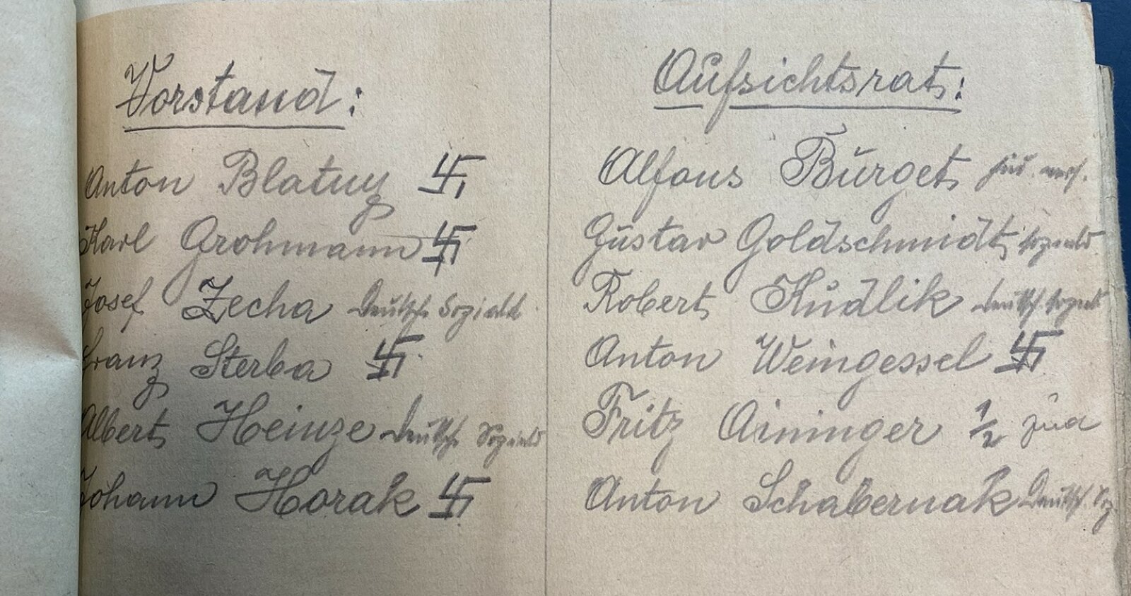 Obr. č. 6: Členové orgánů družstva Freundschaft tak, jak si je psal Anton Blatny. Zdroj MZA, fond Oberlandrat Brno