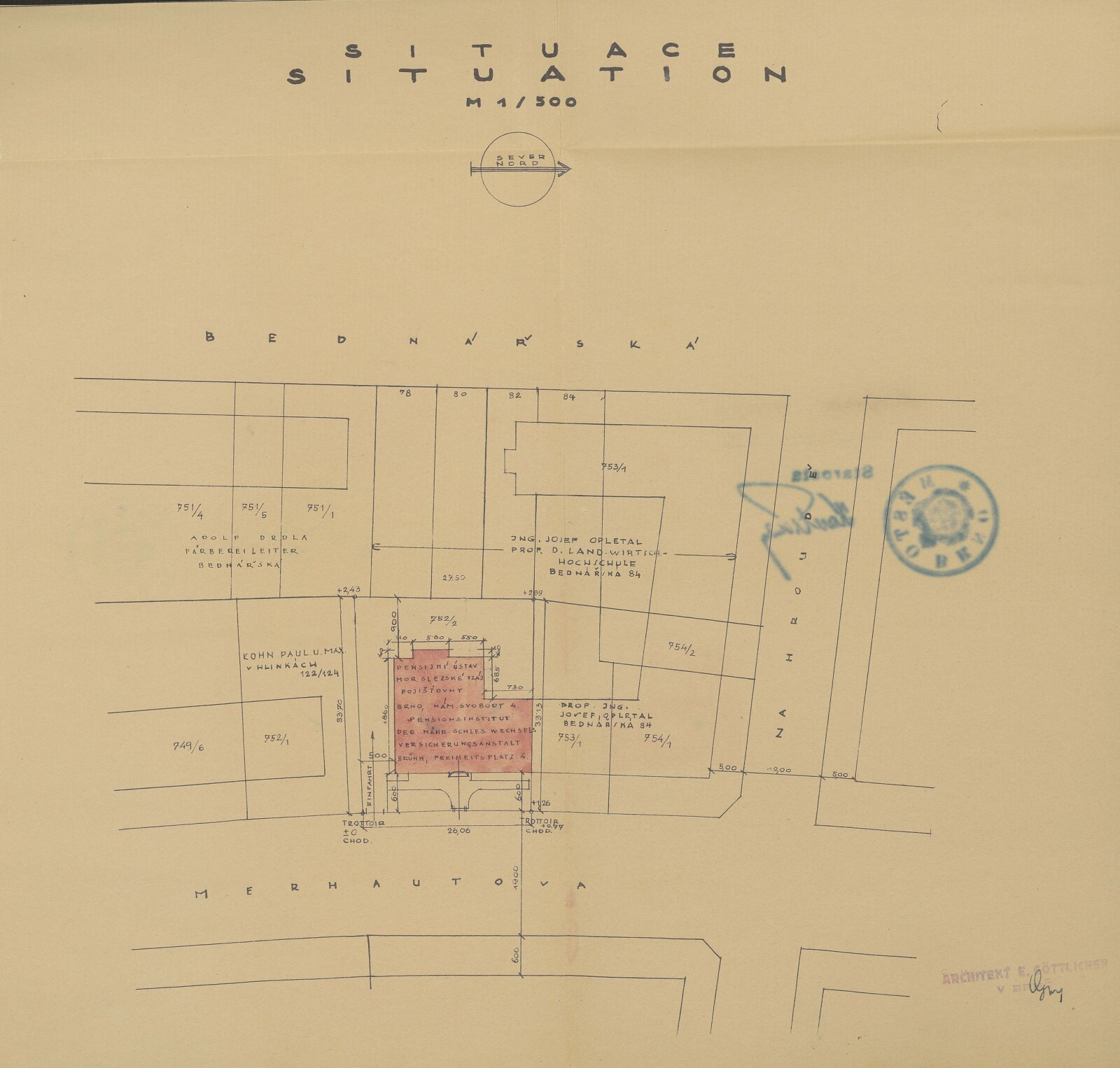 Obr. č. 8: Plán ke stavbě nájemního domu Penzijního ústavu na Merhautově 75. Zdroj AMB, fond U9