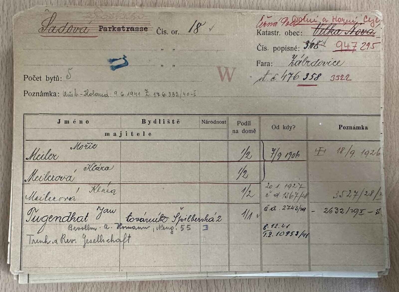 Další příběh z našeho seriálu nás vrátí zpět do okolí Arnoldovy vily. Na Drobného 18 se nachází reprezentativní nájemní dům z roku 1900, jehož původními vlastníky byli manželé Moritz a Klára Meilerovi. Moritze Meilera, obchodníka s oděvy a textilním zbožím, dodnes připomíná dvojice písmen ,,M“ na ozdobné mříži u vstupních dveří do domu z Drobného ulice. Jeho žena Klára byla dcerou Hermanna a Marie Tugendhatových, takže teta Fritze Tugendhata.