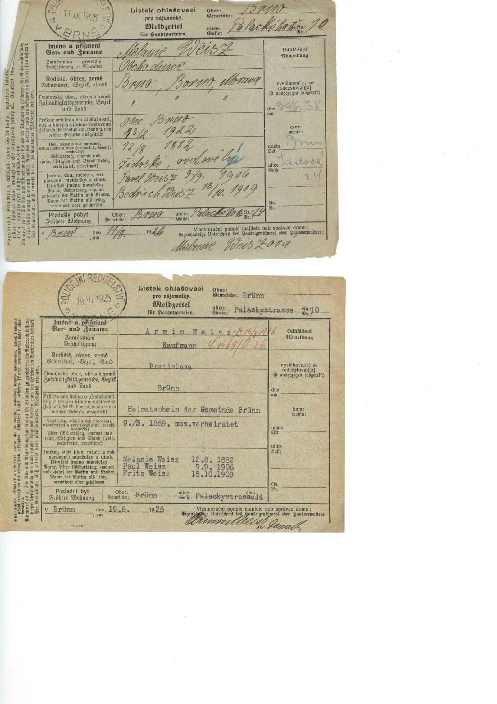 Obr. č. 2: Přihlášky Armina a Melanie Weiszové