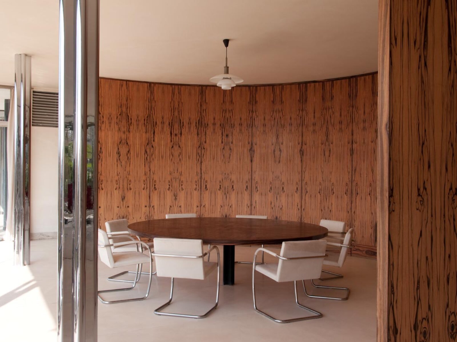 Volba materiálů byla pro architekta zásadní, jak Mies zdůrazňoval stavebníkům. „Potom nám vysvětlil, jak je důležité zejména v moderní stavbě, která je takřka bez ozdob a ornamentu, používat ušlechtilých materiálů, což bylo doposud opomíjeno například i Le Corbusierem,“ vzpomínala Greta Tugendhatová.