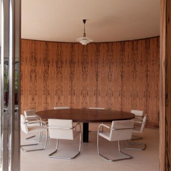 Vestavěný nábytek, stejně jako volně stojící kusy dřevěného nábytku, navrhl Ludwig Mies van der Rohe společně s Lilly Reich tak, aby odpovídal celkové architektonické koncepci domu.