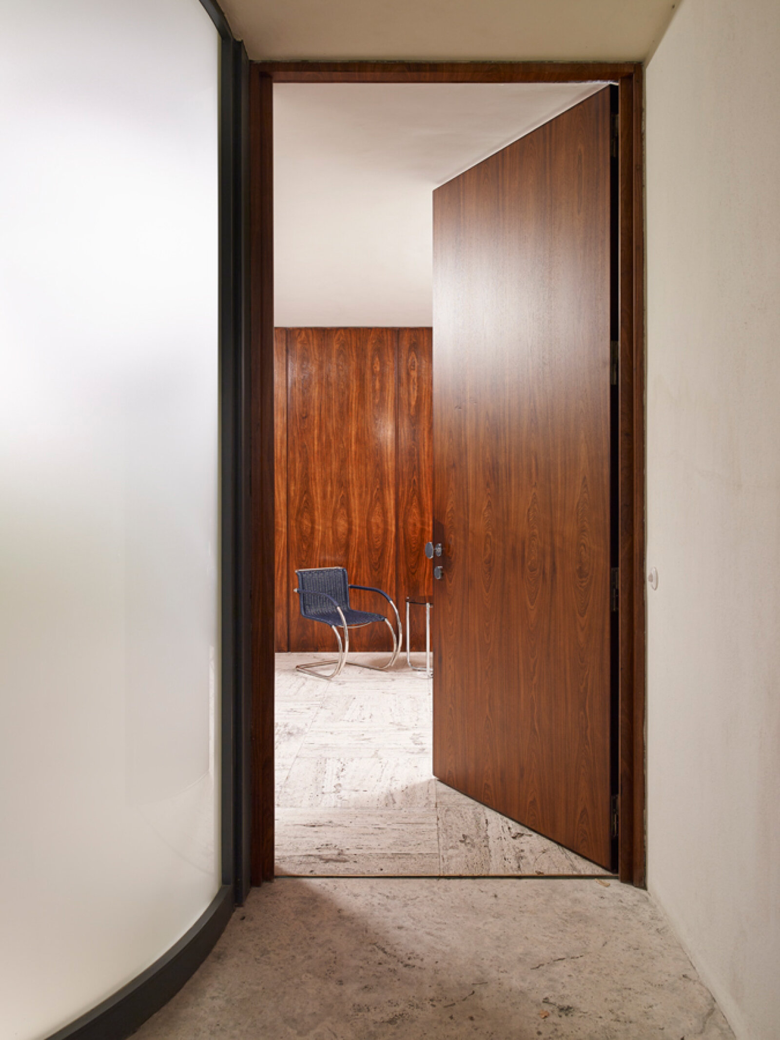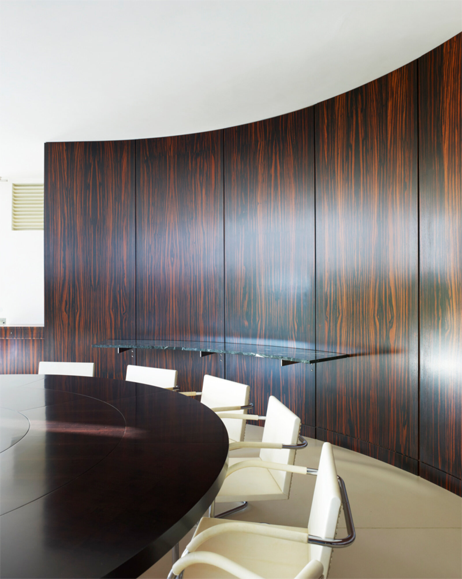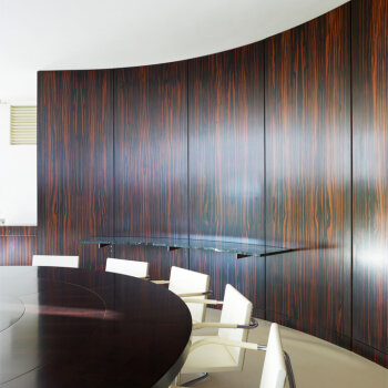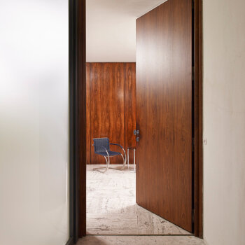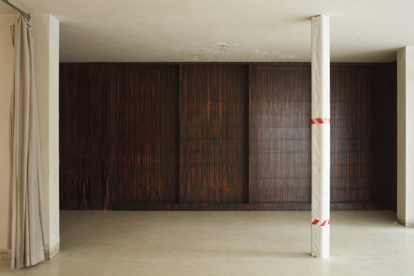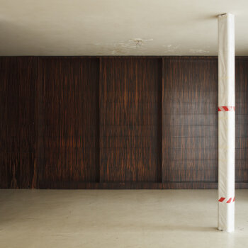 - Příčka dýhovaná africkým zebranem po rekonstrukci v 80. letech – zachycení stavu před začátkem památkové obnovy, Foto: David Židlický (2010)