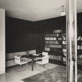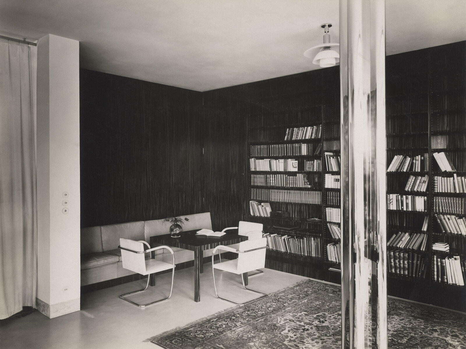 - Knihovna s posezením u bridgeového stolku, Foto: Rudolf Sandalo (1931)