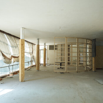 - Dochovaná část vestavěné knihovny – zachycení stavu v průběhu památkové obnovy, Foto: David Židlický (2010)
