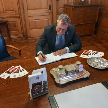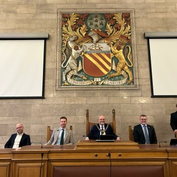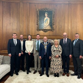 Součástí cesty byla i návštěva muzeí v Manchesteru, kde jsme se rovněž zajímali o způsoby prezentace průmyslové a industriální historie města – inspiraci pro takzvaný „brněnský Manchester“. Otázky obnovy a využití industriálního dědictví jsme diskutovali i s Lord Mayor Cllr. Carminem Grimshawem na místní radnici, kde nás velmi přátelsky přijal.