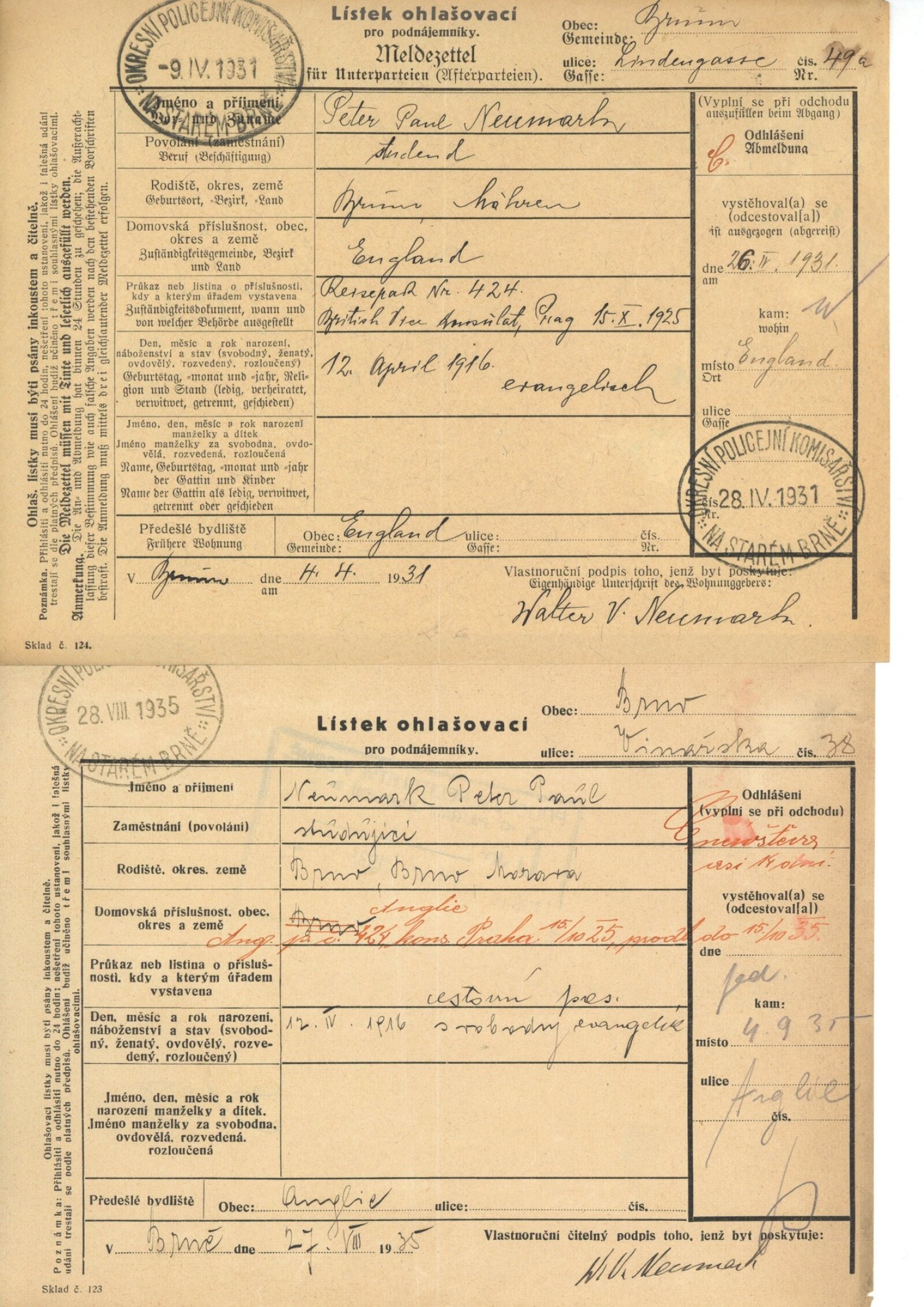 Obr. č.25: Peter Paul a Thomas Viktor Neumarkovi Neumarkovi. Zdroj Soukromý archiv rodiny Neumark