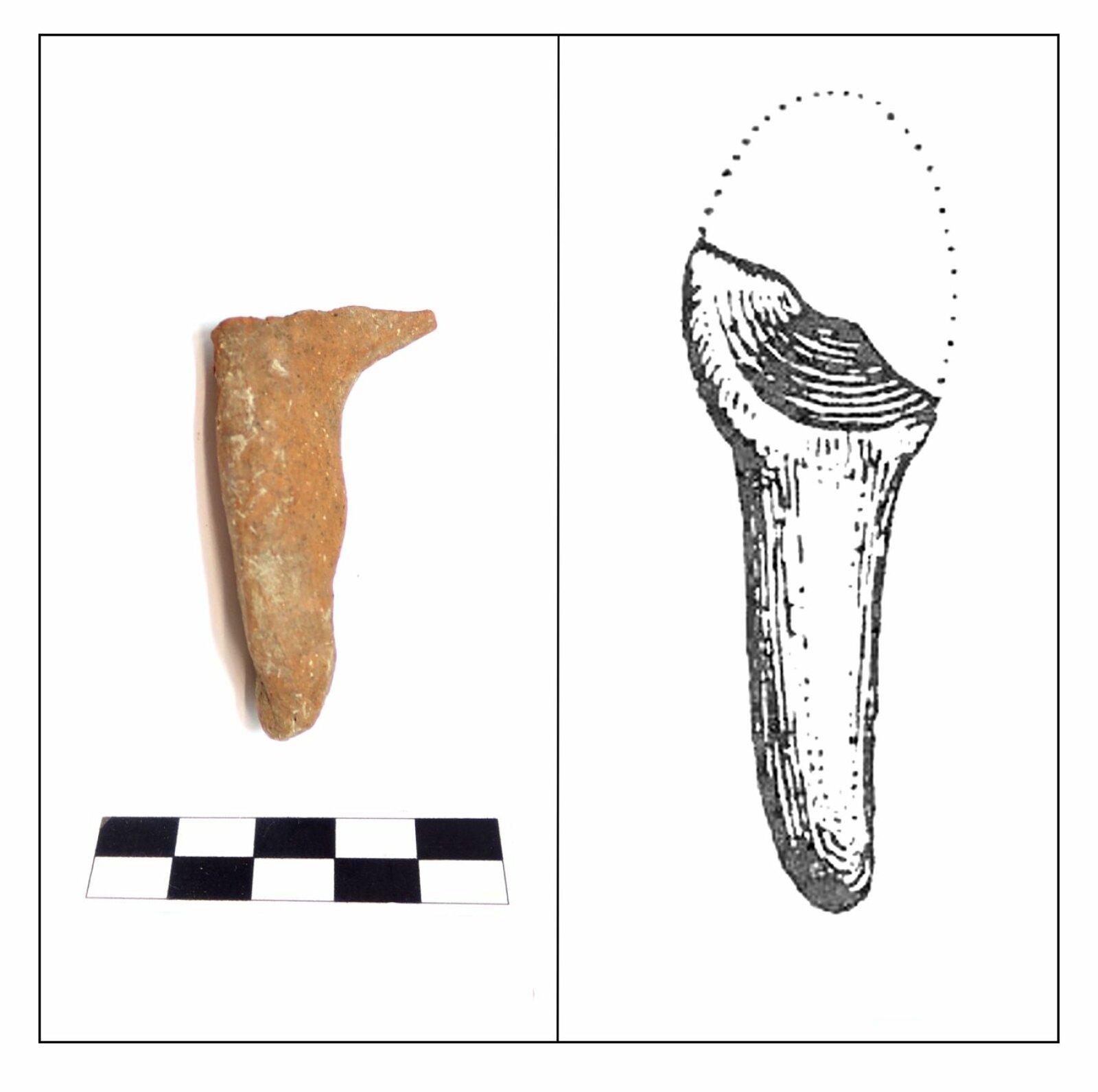 Obr. 2: Zlomek keramické lžičky a analogický nález z lokality v Bojanovicích.
