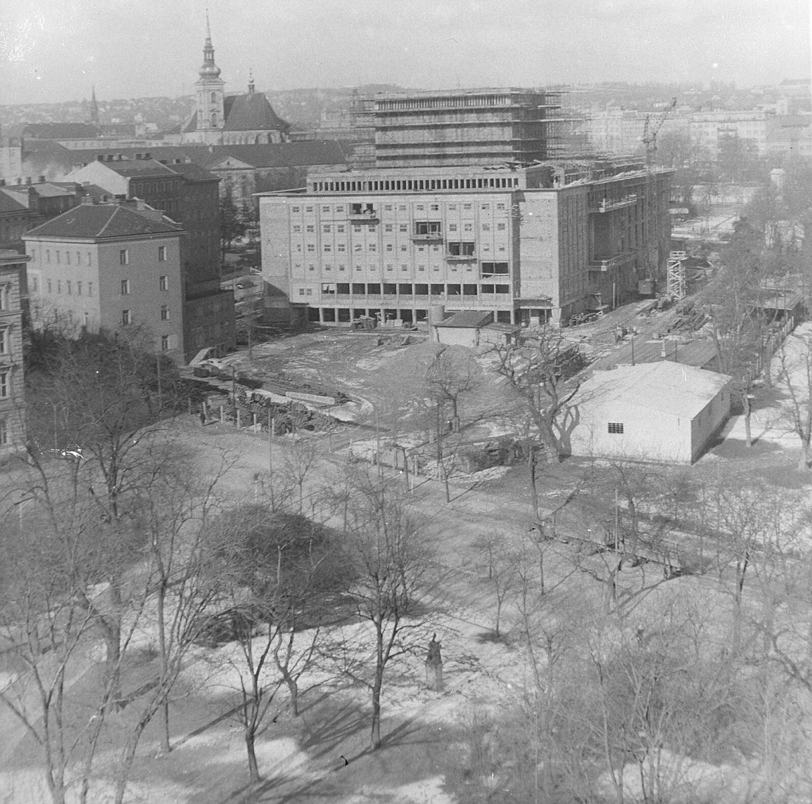 Družstvo českého divadla národního v Brně zakoupilo hostinec s tančírnou na nároží ulice Veveří a Žerotínova náměstí, který se od roku 1884 proměnil v Prozatímní české divadlo (tzv. Divadlo na Veveří). Po desetiletích hledání vhodné parcely a mnoha architektonických soutěžích vznikl v roce 1958 projekt ve Stavoprojektu, který pak finalizoval Otakar Oplatek a Vilém Zavřel ve spolupráci s Libuší Žáčkovou-Pokornou. Jako externí poradce působil Jan Víšek, který se s Vilémem Zavřelem věnoval projektování českého divadla od roku 1936 a společně v několika soutěžích zvítězili. K projekčnímu týmu ve Stavoprojektu se připojili mladí architekti Ivan Ruller a Boleslav Písařík. Stavba proběhla v letech 1960–1965 a její náklady dosáhly 100 miliónů korun. Budova nového divadla byla slavnostně otevřena 2. října 1965 inscenací opery Příhody lišky Bystroušky od Leoše Janáčka, jenž v roce 1865 přišel studovat do Brna, s nímž je neodmyslitelně spjat.