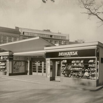 V dubnu 1926 se začala na náměstí Svobody stavět nová tramvajová čekárna. Navázala tak na čekárnu, které vznikla jen o pár měsíců dříve Na kiosku – nároží Koliště a Lažanského, dnes Moravského náměstí (u parku). Autorem drobných objektů byl architekt Oskar Poříska, který v roce 1925 nastoupil na Stavební úřad města Brna, kde se stal kolegou Jindřicha Kumpošta, Bohuslava Fuchse, Jaroslava Grunta a Josefa Poláška a kde byl vzápětí pověřen úkolem navrhnout čekárenské pavilony pro městskou pouliční dráhu, jak zněla tehdejší terminologie. Zatímco čekárna Na kiosku vznikla v srpnu až prosinci 1925, čekárna na náměstí Svobody, která později proslula jako „Hříbek“, se stavěla od dubna do října 1926. Vzhledem k velikosti staveb to byla na tehdejší poměry doba dosti značná. Nejen ta se však stala terčem kritiky a posměšků Brňanů i denního tisku. O čekárně Na kiosku, jejíž součástí byl bufet, trafika a telefonní hovorna, referoval, že „vypadá trochu divoce a kontrastuje se všemi okolními stavbami, zejména se starou protější budkou pouliční dráhy.“ Protější čekárna na místě staré budky byla postavena až v roce 1932 a kromě prodejen firmy Vichr a Delikatesa měla v podzemí přečerpávací stanici Městské vodárny a transformační stanici Městské elektrárny. Čekárnu na náměstí Svobody ohodnotil tisk jako „praobyčejný kolotoč“, který má jen přepychový záchod pod zemí, vykládaný mramorem.“ Lidové noviny zmínily moderní stavební hmoty jako šamotové příčky Rako, skloželezobetony, speciální cihly, izolace Arco a také mramor a mrákotínskou žulu. Moravská orlice se obávala, že to bude „zas nějaká podobná stavitelská obluda jako je ta na Kiosku“ a zdůraznila, že stavba byla zadána židovské firmě Fischmann, neboť „českých podniků a živností pro české Velko-Brno patrně není“. Přes odborná vysvětlení stavebního úřadu se stavba stala terčem všeobecného posměchu a vtipy na ni se šířily jako nákaza. Její částečně válcový objem s výrazně vyloženou kruhovou markýzou zřejmě podnítily pojmenování „hříbek“. Ten se stal záhy legendou, kterou pamatují jen hodně dříve narození Brňané, kteří si dávali sraz u „hříbku“ (v hantecu u „gamplu“) a nemohli se minout. Jeho funkce zastávky zanikla v září 1958, kdy přestaly jezdit tramvaje Kobližnou ulicí a v roce 1965 byl zbořen. Poslední prvorepublikový „čekárenský pavilon“, navržený Oskarem Pořískou v roce 1929, který je však jen jednoduchým přístřeškem, stojí na zastávce na Obilním trhu. Je to prakticky replika z let 2015–2017, avšak bez telefonu a WC v podzemí, kterými byla čekárna vybavena. Z originální stavby se podařilo repasovat a uplatnit alespoň původní ocelové konstrukce včetně dveří do telefonního boxu. Je to poslední „žijící příbuzná“ legendárního „hříbku“ a dalších zaniklých Pořískových čekáren, jejichž elegantní křivky byly svěžím oživením veřejného prostoru v rámci proslulé brněnské meziválečné architektury.