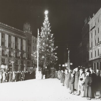 Muzeum města Brna uchovává unikátní skleněný negativ od známého brněnského fotografa Vladimíra Lehkého, zachycující rozsvícení prvního vánočního stromu v roce 1924.