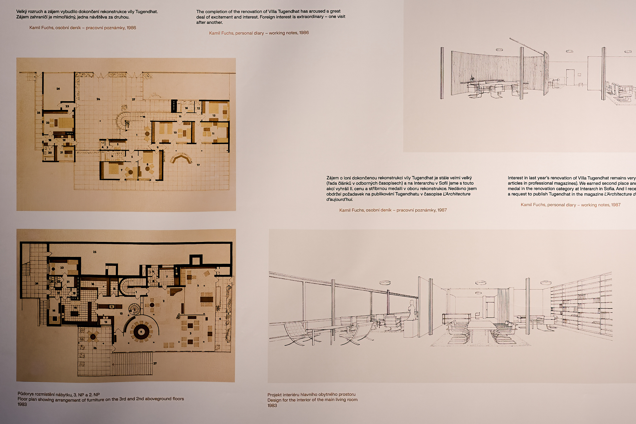 The most important of these projects was the renovation of Villa Tugendhat (1981–1985). Officially completed on 27 August forty years ago, it earned Fuchs’s team a silver medal at the 1987 World Biennale of Architecture in Sofia.