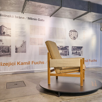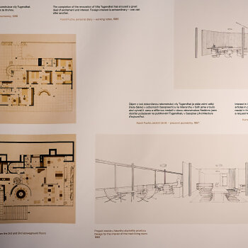 The exhibition at Villa Tugendhat is part of the exhibition and publication project The “New World” of Kamil Fuchs, which symbolically follows on the earlier exhibition The New World of Bohuslav Fuchs and Rudolf Sandalo. This new “intervention” into the permanent exhibition The New Brno: Brno Architecture, 1919–1939 presents four chapters in the work of Kamil Fuchs. The section titled Collaboration focuses on joint projects and competitions by father and son Bohuslav and Kamil Fuchs. Architectural Alterations looks at Kamil Fuchs’s renovations of his father’s buildings, thus reflecting an interesting situation in which Kamil did new interiors for Bohuslav’s modernist works of architecture. The third chapter, Nurturing the Legacy, explores Kamil Fuchs’s designs for his father’s gravestone and memorial plaque. And the final section of the exhibition at Špilberk Castle presents a generally unknown aspect of Kamil Fuchs’s work – his Fine Art, provided exclusively on loan just for this occasion.