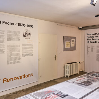 The Restoration(s) of Kamil Fuchs presents the most widely acclaimed part of Fuchs’s work – his heritage-sensitive renovations – through selected renovations and adaptations of listed buildings in Brno. These projects were drafted in collaboration with his team from Studio 20 at the Brno branch of the State Institute for the Renovation of Historic Towns and Listed Buildings (SÚRPMO).