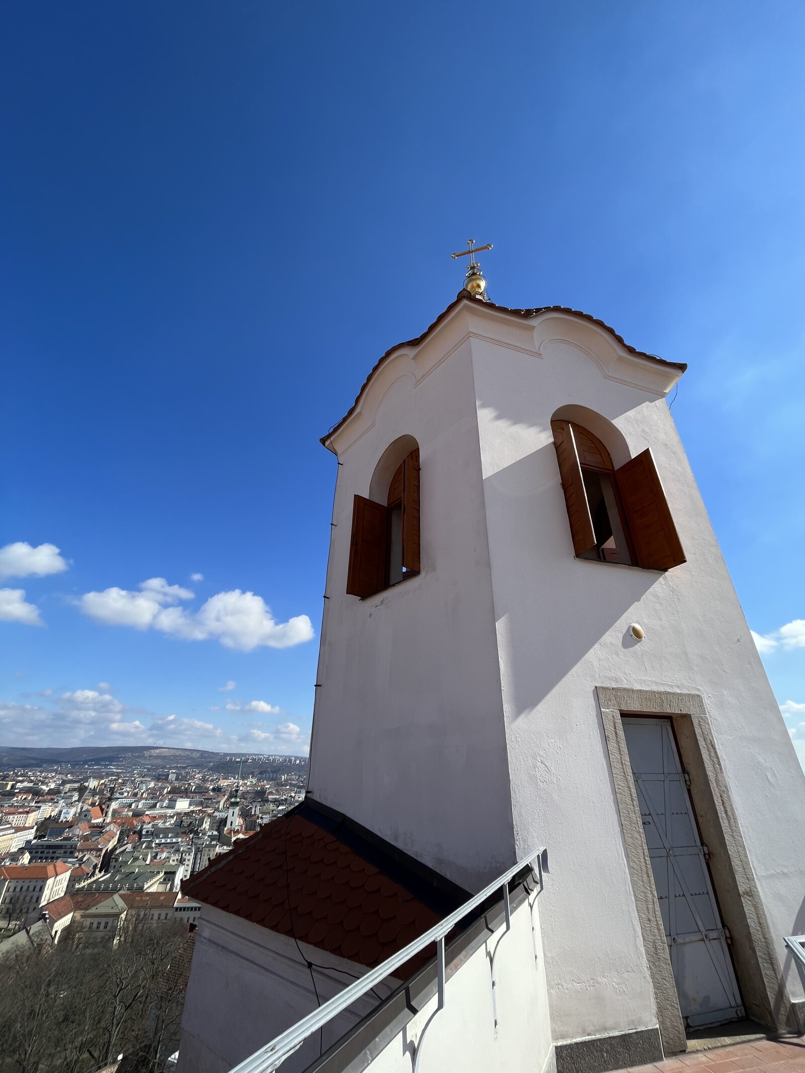 Samotný výstup na špilberskou rozhlednu je zážitek. Z malého nádvoří vystoupáte kamenným schodištěm, následuje krásné dřevěné točité schodiště, vydechnete si v prostoru půdy nad cihlovou klenbou a výstup zakončíte ještě jedním točitým schodištěm. Když překonáte všech 103 schodů, odměnou vám bude ten nejkrásnější výhled na celé Brno. Historické jádro města se všemi jeho dominantami máte rázem jako na dlani, okrajové části, co by kamenem dohodil a za hezkého počasí dohlédnete až na známou siluetu Pálavy.