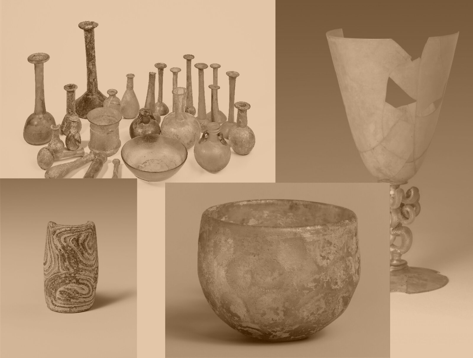 Sklo má bohatou historii sahající až do starověku. První známé skleněné předměty pocházejí z Mezopotámie a Egypta kolem roku 2500 př. n. l., kde se vyráběly korálky a malé nádoby. Významný pokrok nastal v době Římské říše, kdy se rozšířila technika foukání skla. Archeologické nálezy skla se často objevují v hrobech, historických sídlištích a obchodních centrech, to svědčí o jeho širokém využití. Sklo je však materiál křehký a citlivý na změny prostředí, což komplikuje jeho restaurování. Archeologické sklo bývá často zkorodované, popraskané nebo ztrácí průhlednost. Restaurátoři musí pečlivě volit metody čištění a stabilizace, aby nedošlo k dalšímu poškození, proto se používají se speciální lepidla, přípravky a adjustace na podklad předpokládaného tvaru. Cílem je zachovat co nejvíce původního materiálu a zároveň zajistit jeho dlouhodobou ochranu. Konzervace a restaurování skla je tak kombinací vědy, umění a trpělivosti.