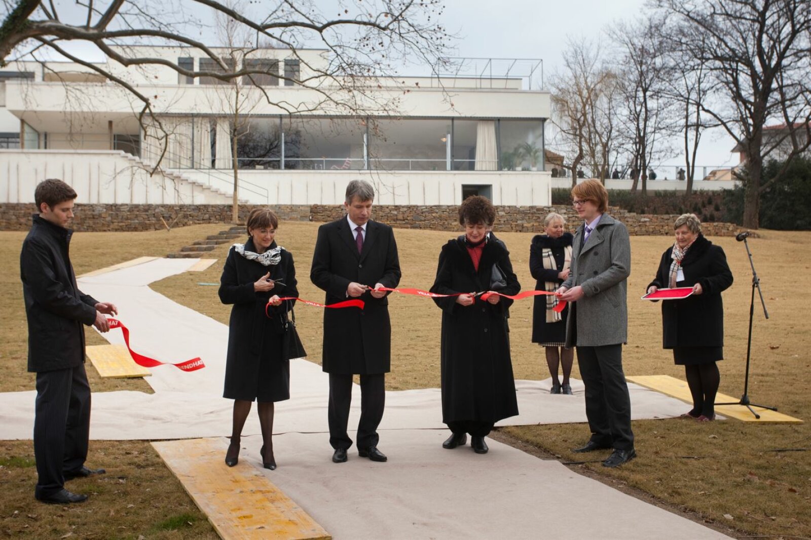 - Slavnostní přestřihnutí pásky při otevření vily Tugendhat