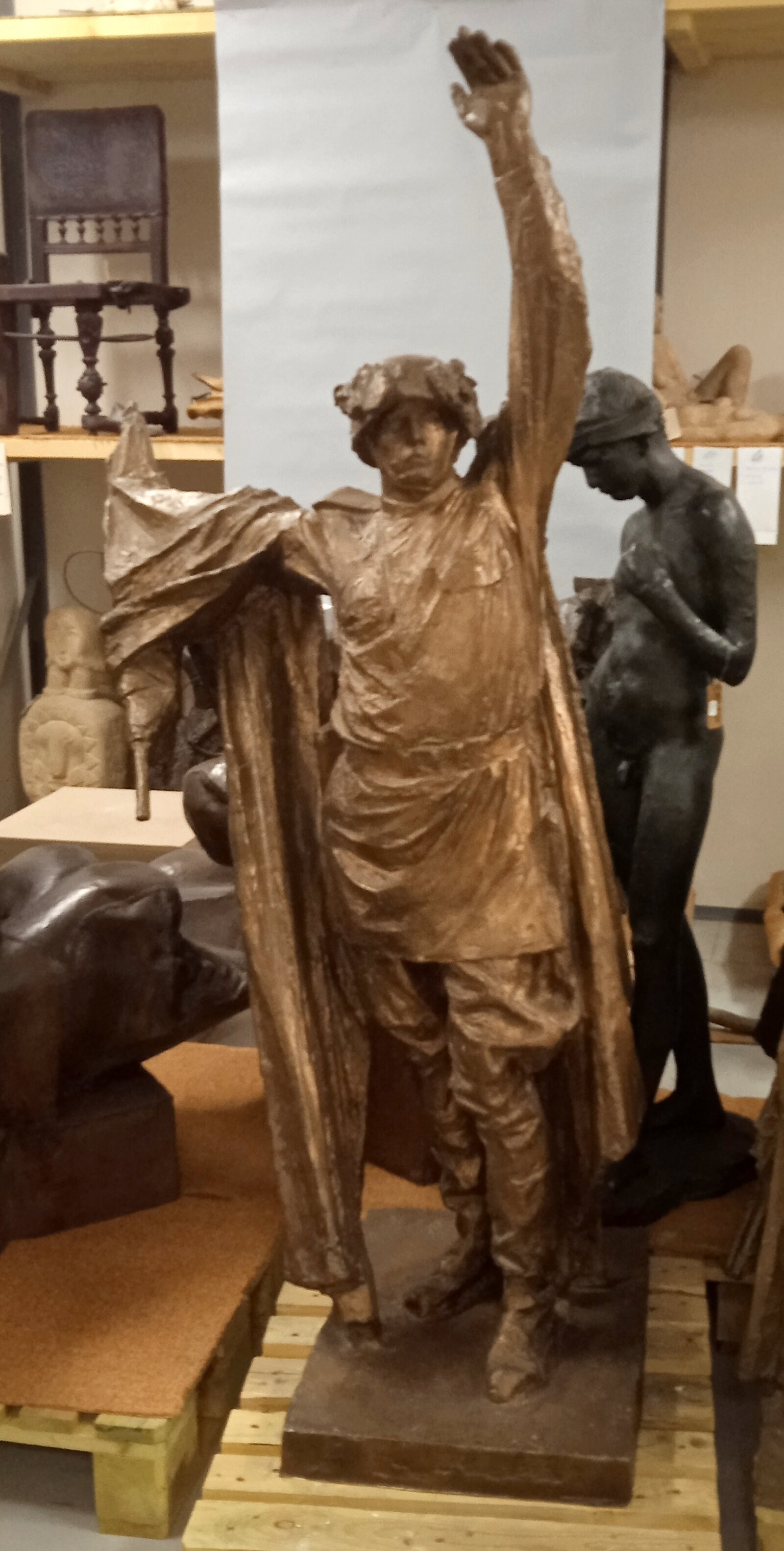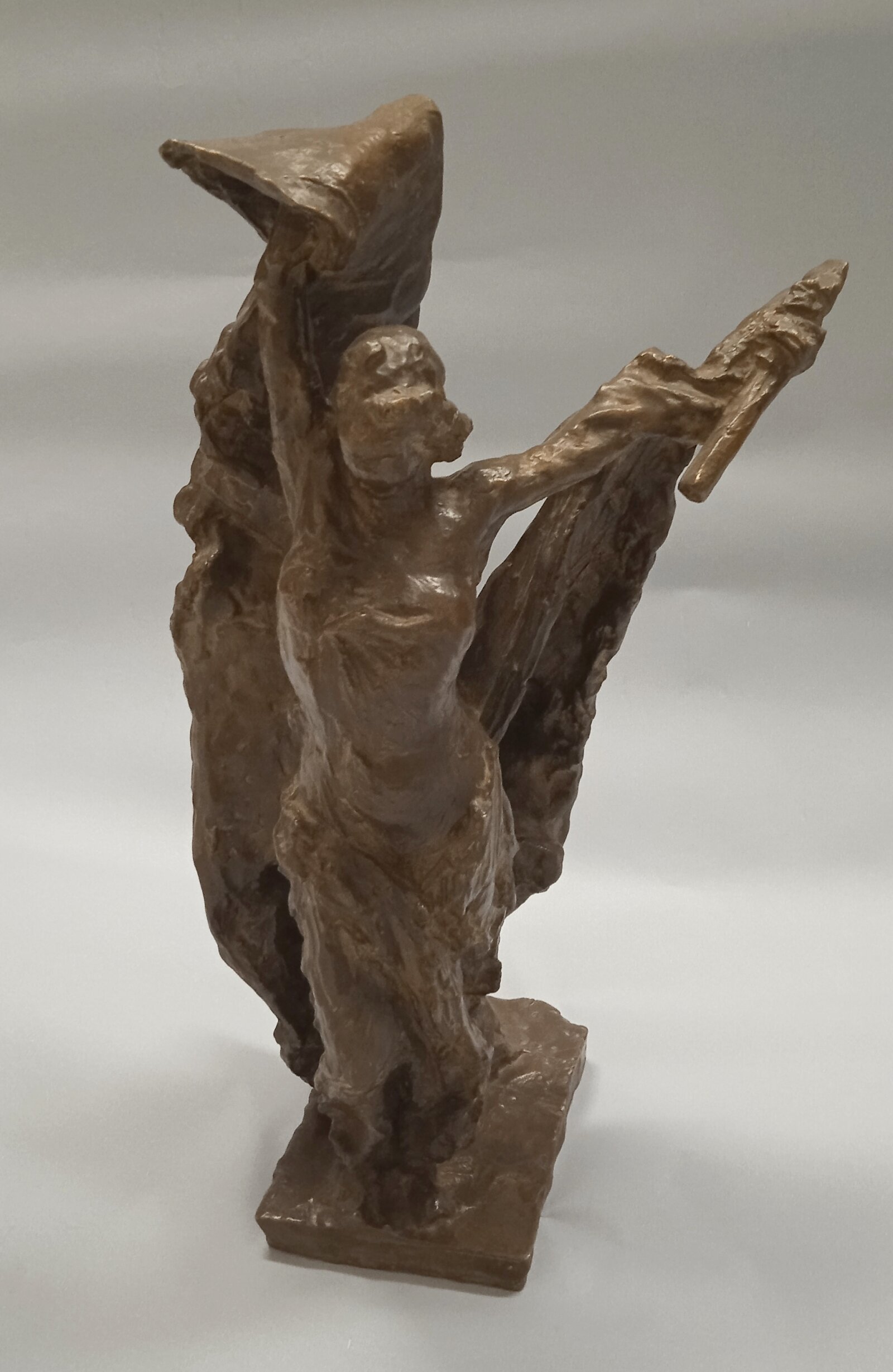 Muzeum města Brna má ve svých sbírkách řadu velkých plastik, ale i sochařské návrhy monumentálních soch, které znají Brňané z prostředí, kterým denně procházejí. Pracovní modely umožňují sledovat, jak se vyvíjela autorova myšlenka od původního návrhu po konečnou realizaci. Jedním z takových příkladů jsou i dva modely Pomníku vítězství Rudé armády nad fašismem na Moravském náměstí, známého jednoduše jako Rudoarmějec. Jeho autorem byl nejvýznamnější moravský monumentální sochař své doby Vincenc Makovský. Pomník dokončil v roce 1955. Původně zamýšlel dát pomníku vítezství nad fašismem podobu antické bohyně Níké. Níké byla bohyní vítězství. Měla podobu ženské postavy s křídly, která často držela v ruce pochodeň, vavřínový věnec nebo palmovou ratolest. Jako symbol vítězství byla ztvárňována i v dalších stoletích, kdy antický svět dávno zanikl. Známá je její obří socha, která završuje Sloup vítězství v berlínském parku Tiergarten. Tradiční podobu ženské okřídlené postavy s pochodní v ruce zvolil pro brněnský pomník i Vincenc Makovský, jak je vidět z modelu, který se nachází ve sbírkách Muzea města Brna. V průběhu prací ale sochař i pod vlivem společenské objednávky padesátých let svůj záměr změnil a místo Níké vytvořil sochu rudoarmějce. Nechtěl se ale vzdát svého původního kompozičního záměru. Na modelu ze sbírek Muzea města Brna i v konečném provedení pomníku je patrné, že vztyčená ruka s pochodní i křídla Níké našly svůj ohlas i v postavě rudoarmějce. Vztyčená ruka vojáka dává povel k zastavení palby. Prapor, který v druhé ruce drží zvláštním a nepřirozeným způsobem, naznačuje, že jeho tvar vychází z původního křídla Níké.