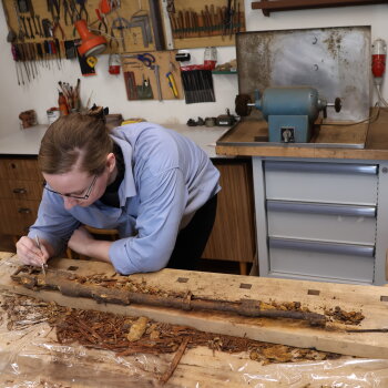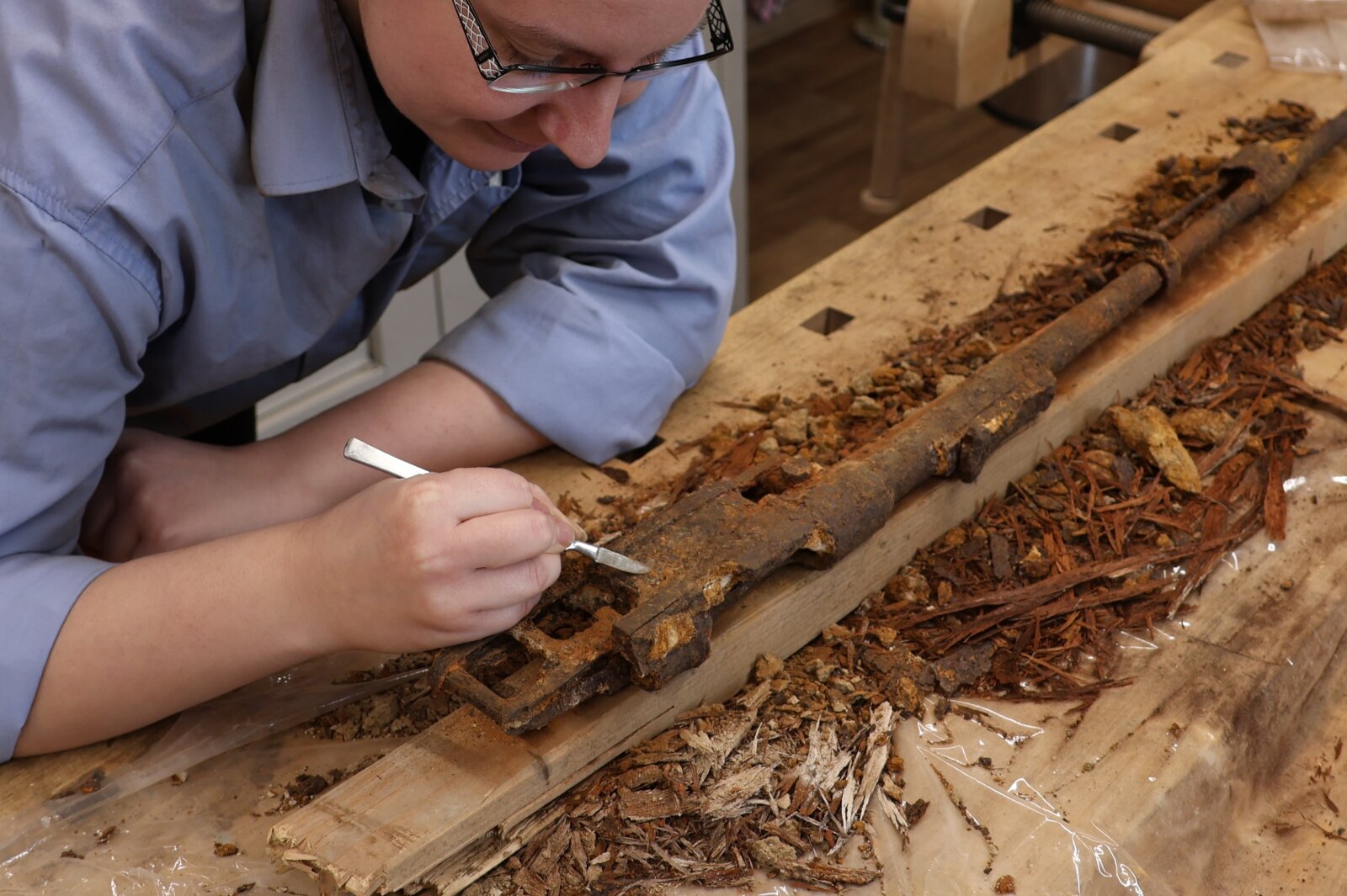 Při výkopových pracích v Brně-Bohunicích byl nalezen unikátní svědek německé obrany města během jeho osvobozování Rudou armádou. Šlo o německou pušku Karabiner 98k (K98k), která představovala základní výzbroj německého vojáka od roku 1935 a v různých armádách světa sloužila ještě dlouho po druhé světové válce. Pozoruhodným detailem je fakt, že zbraň zůstala opřena v zákopu s vytaženým závěrem – voják jej zřejmě odstranil a zahodil, aby pušku znemožnil sovětským jednotkám okamžitě použít. Pocit vojáka v takovém okamžiku byl pravděpodobně směsicí pudové touhy po přežití, totálního vyčerpání a čirého pragmatismu. Pokud německý voják na východní frontě (zejména v pozdní fázi války) opouštěl pozici a znehodnocoval svou zbraň vyhozením závěru, nešlo o náhodu, ale o symbolický i praktický konec jeho bojové cesty. Nalezený artefakt následně prošel rukama odborníků v konzervátorské dílně. Díky trpělivé práci konzervátorky získal svou novou, ač jen částečně původní podobu. Za dlouhá desetiletí ve vlhké zemině se sice dřevěná pažba lepená z dýh rozpadla, avšak kovové součásti se zachovaly v poměrně dobrém stavu.