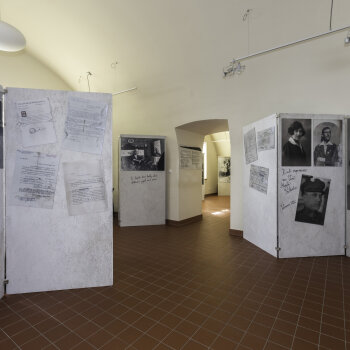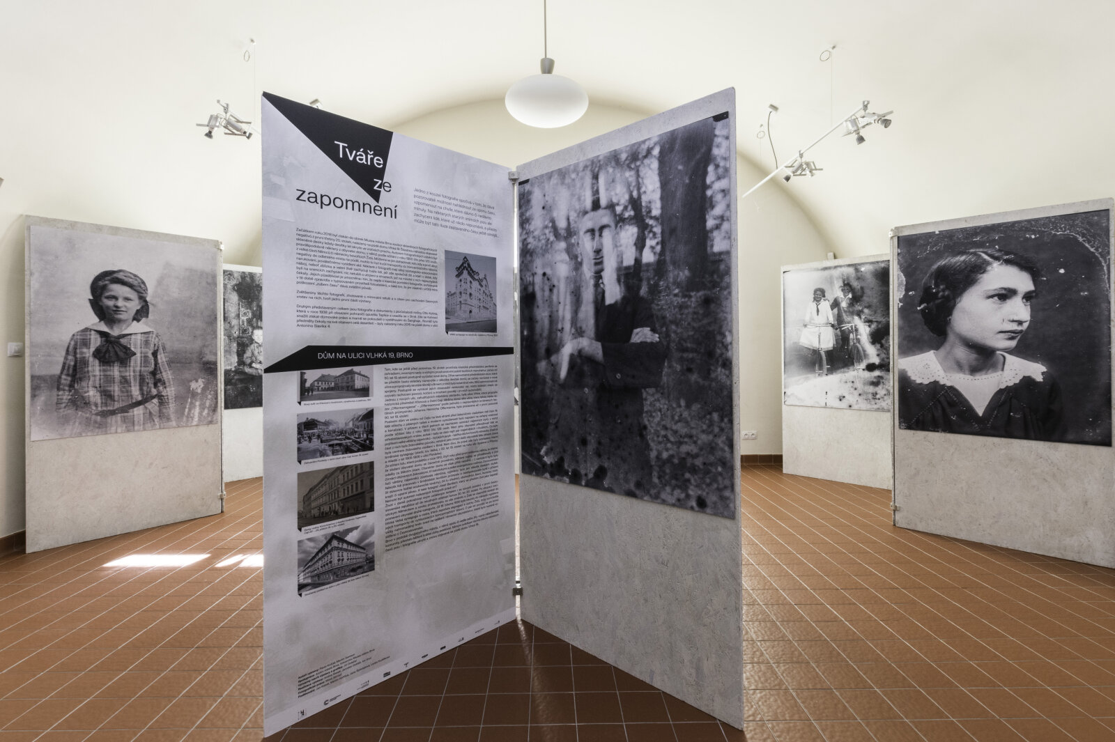 Šťastnou náhodou objevené skleněné desky ležely desítky let skryté pod vrstvou prachu. Autorem fotografických záběrů byl pravděpodobně některý z obyvatel domu, v němž podle sčítání z roku 1900 žilo přes 120 osob, z velké části Němců či německy hovořících Židů. Můžeme se jen dohadovat, kdo, kdy a proč ukryl negativy do odlehlého místa na půdě. Mohlo to být kvůli transportu do koncentračního tábora, narukování, poválečnému vysídlení? Některé z fotografií mají silný nostalgicko-emocionální náboj, neboť zblízka a velmi živě zachycují tváře lidí, jež zde společně žili, a kteří v době, kdy byli na snímcích zachyceni, nic netušili o utrpení a strastech, které na mnohé z nich nepochybně čekaly. Nevšední se tato výstava stává také proto, že určitá míra poškození „zubem času“ dává vystaveným fotografiím zvláštní půvab. Působivost snímků je umocněna tím, že nejde o klasické portrétní fotografie pořizované v té době zpravidla v typizovaném prostředí fotoateliérů. Tento „poklad z půdy“ zvětšený na velkoformátové panely s minimální retuší a s citem pro zachování časových stop na něm, tvoří jádro první části výstavy.