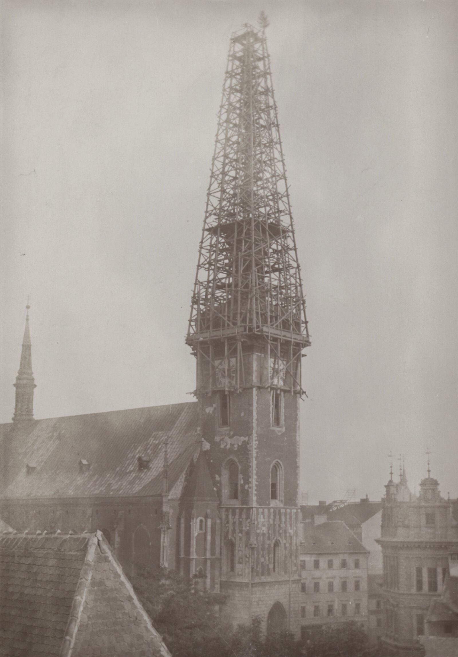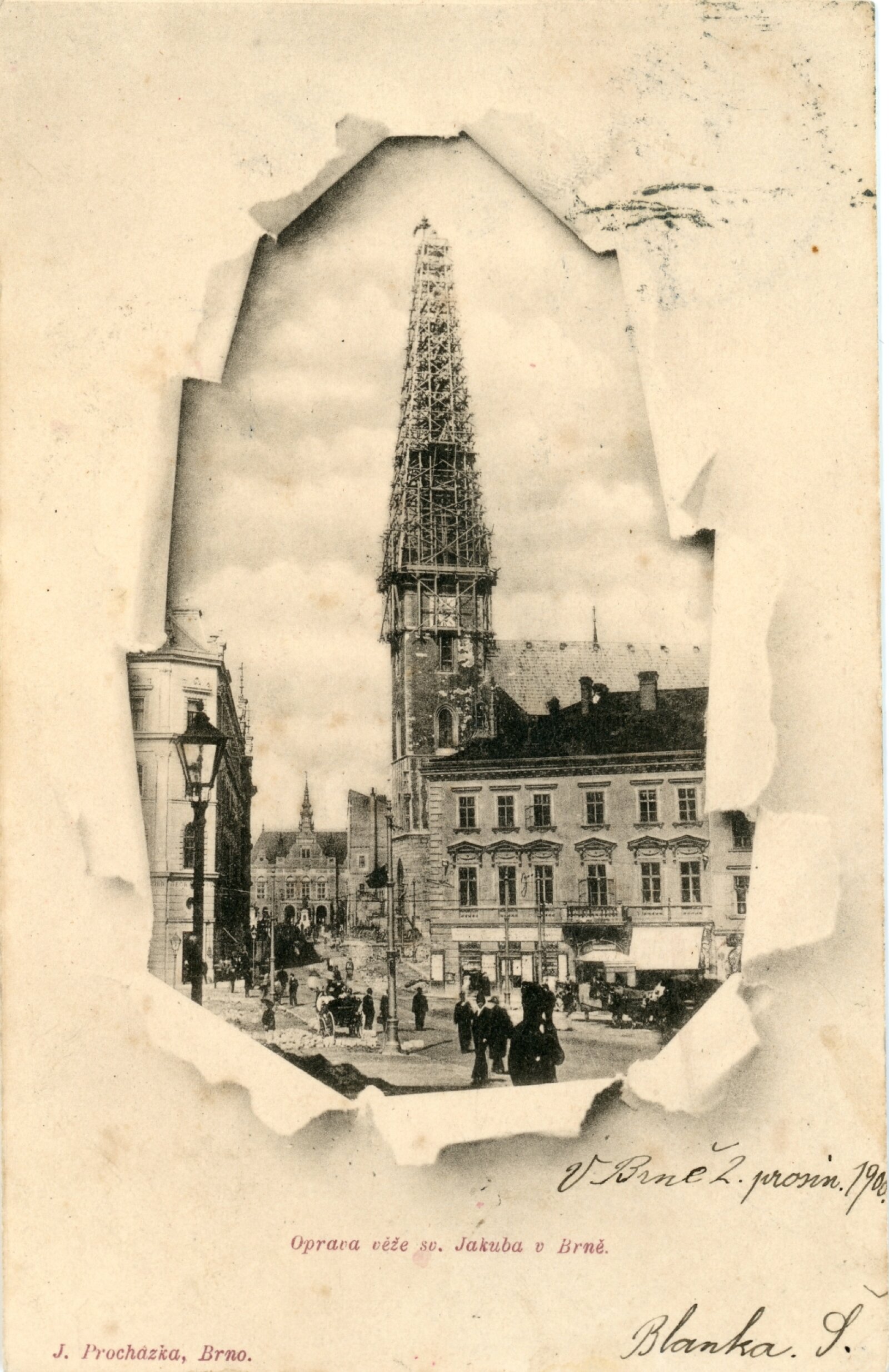 Zmíněná rekonstrukce věže na začátku 20. století na několik let změnila siluetu města Brna. Dřevěný krov byl nahrazen železnou konstrukcí a celá věž byla opětovně oplechována v původním tvaru z konce 16. století. Výšková dominanta centra města pod lešením vzbuzovala nemalou pozornost. Dostala se nejenom do hledáčků fotografů ale stala se i vděčným námětem pro dobové pohledy.