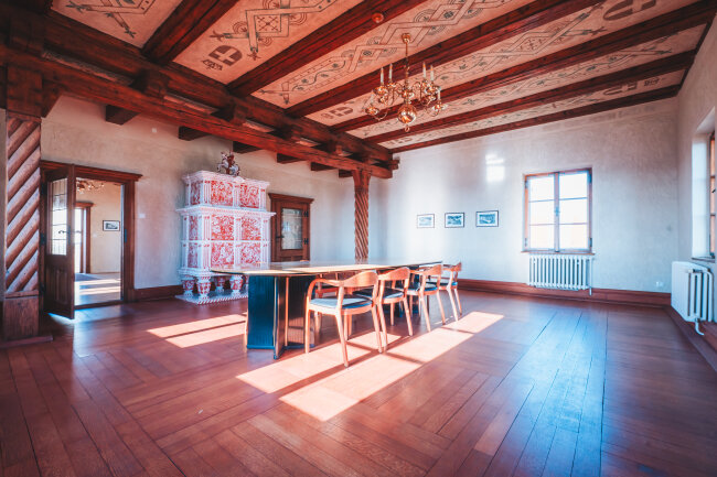 If you look at the north wall of the room, you can see the hidden jib door. Behind it, Christian IV had a stair with direct access to the basement. Frederik III (1609–1677) later had the staircase replaced with a so-called ascenseur, or ‘ascending chair’, which was very fashionable at the time. The chair could be pulled up to the first and second floors, so that The King did not have to climb the stairs himself. Unfortunately, we only know the chair from sources, as it no longer exists.