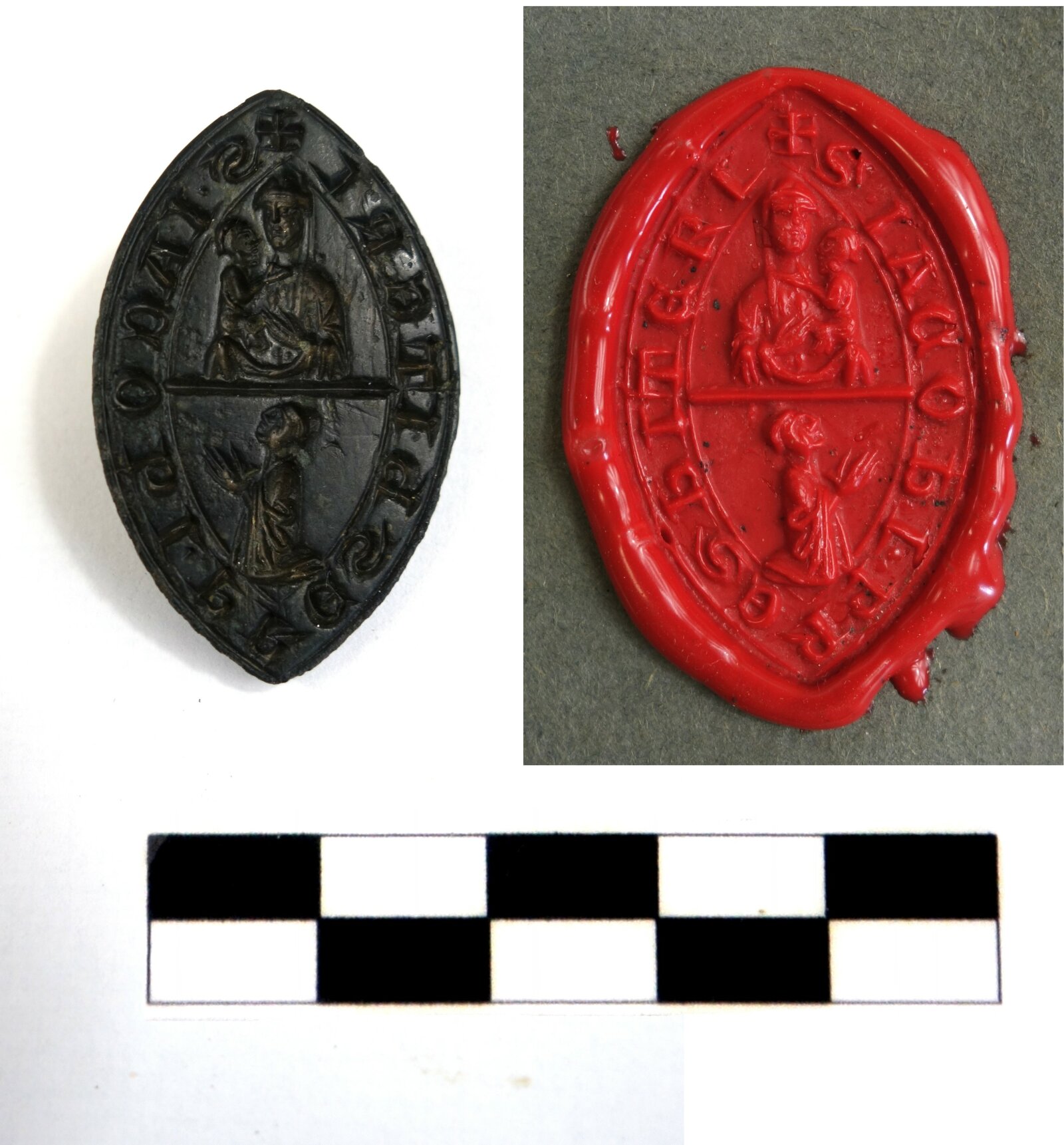 K dalším zajímavým nálezům, které se do sbírek našeho muzea dostaly díky spolupráci se zájemci z řad veřejnosti, patří jedinečně dobře zachovalý vrcholně středověký církevní typář, který byl nalezen u Ořechova. Typář je prakticky pečetidlo, které ve své době sloužilo jako oficiální razítko nebo podpis. V našem případě můžeme vidět na lícní straně krásně provedený obraz Madony s Ježíškem a dále modlícího se prosebníka, který nepochybně představuje majitele pečetidla. Opis značí +S. IACObI.PReSbITeRI, což znamená, že jde o typář kněze Jakuba. Očko na rubu sloužilo k zavěšení pečetidla na řemínek. Na základě provedení se můžeme domnívat, že typář byl vyroben někdy na přelomu 13. a 14. století. Ale kdo byl kněz Jakub a jak se jeho pečetidlo dostalo na pole u Ořechova se už asi nedozvíme.