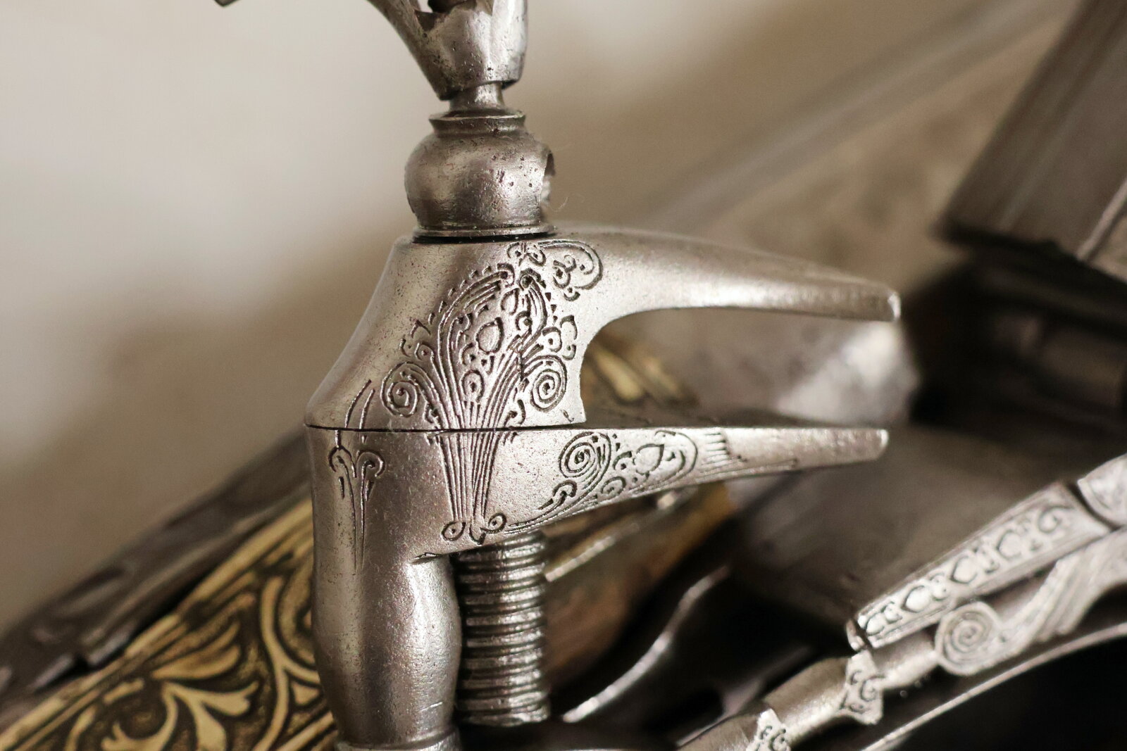 Rytina, nielo, tauzie, inkrustace, tepání či řezba v kovu, to jsou výzdobné techniky nacházející se zejména na výrobcích zručných řemeslníků na Blízkém i Dálném východě. Každá technika výzdoby zahrnuje různorodé použití materiálů a také rozdílné technologie práce. A tak nastane velký problém při čištění, restaurování či konzervaci sbírkových předmětů, který musíme vyřešit individuálním přístupem, rozvahou a odborným přístupem k práci na jednotlivých předmětech. Na restaurování dvou bohatě zdobených albánských křesadlových pušek se v loňském roce podíleli také dva stážisté ze studijních oborů puškař a rytec. A výsledek jejich podílu na znovuzrození obou zbraní můžete posoudit sami.