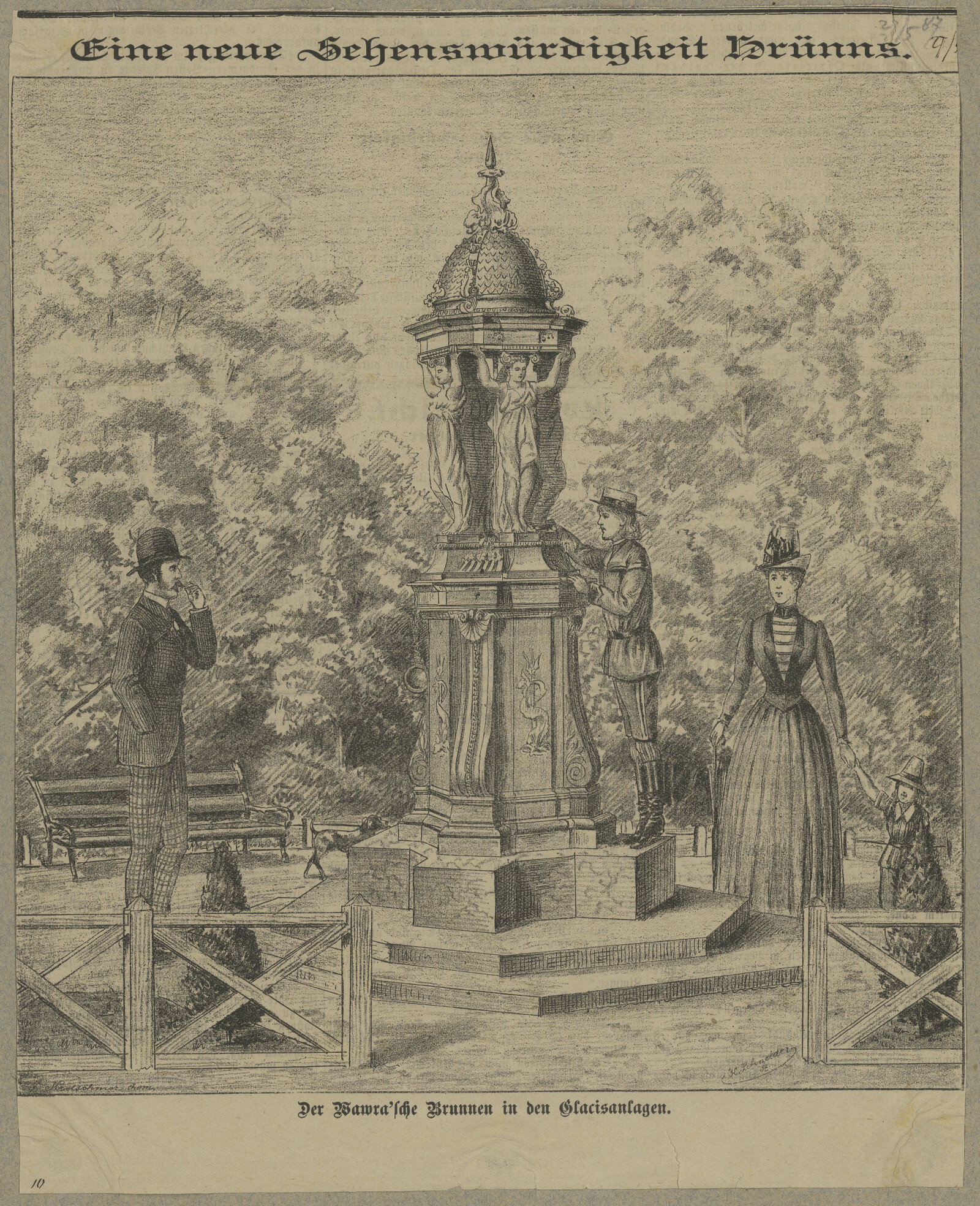 2: Dobové vyobrazení Wawrovy kašny na Kolišti (vlevo je vidět pohárek na vodu)