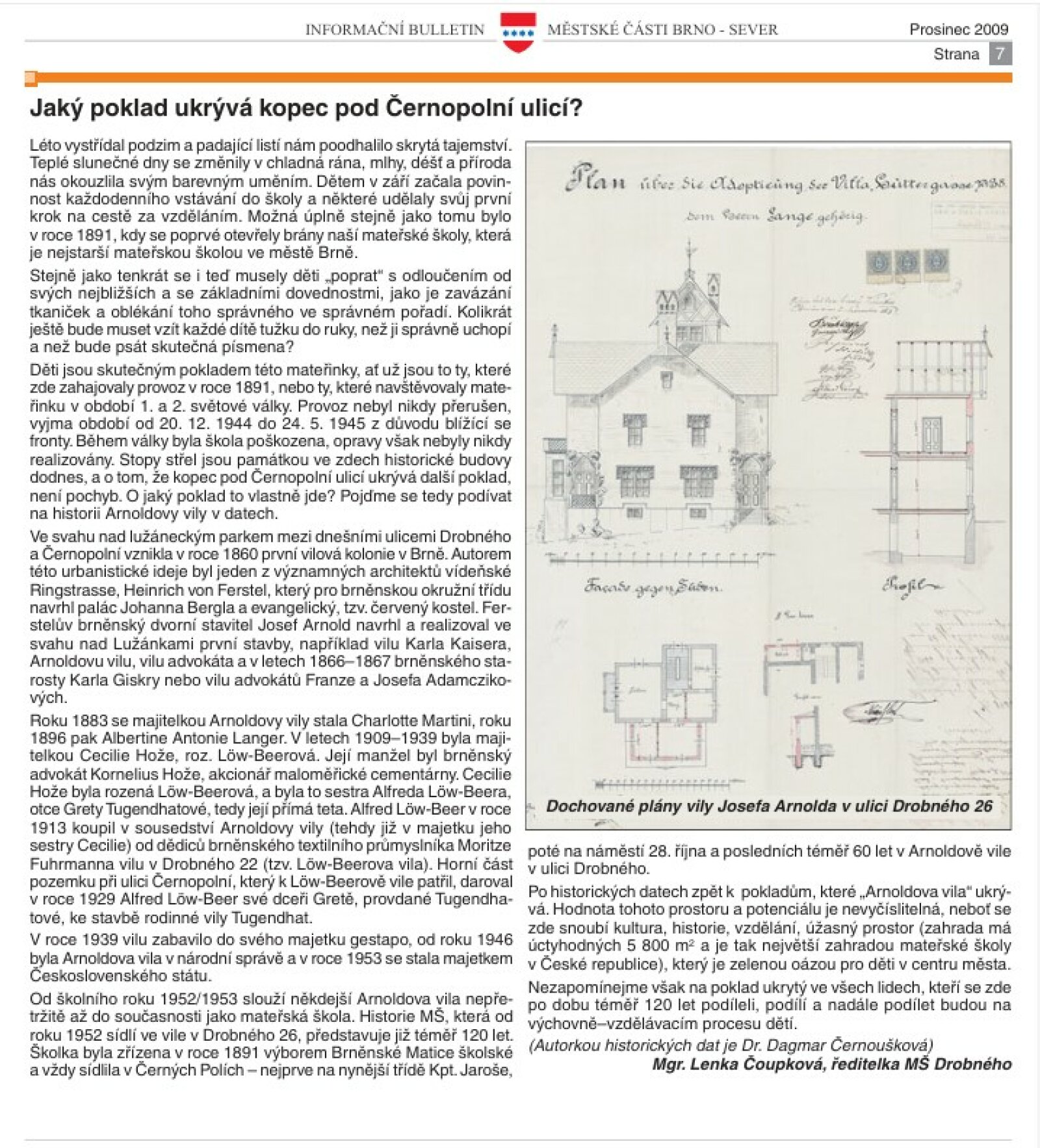 Arnoldova vila dnes spolu s blízkými vilami Tugendhat a Löw-Beer tvoří oblíbený a zdánlivě samozřejmý soubor zpřístupněných vil v brněnských Černých Polích. Nemuselo tomu tak být, bez mnohaletého úsilí celé řady institucí, spolků i jednotlivců, kteří se zasazovali o její záchranu, by se osud Arnoldovy vily i její zahrady mohl ubírat zcela jiným směrem. Dnes se zaměříme na roli rodičů dětí z Mateřské školy Drobného 26.
