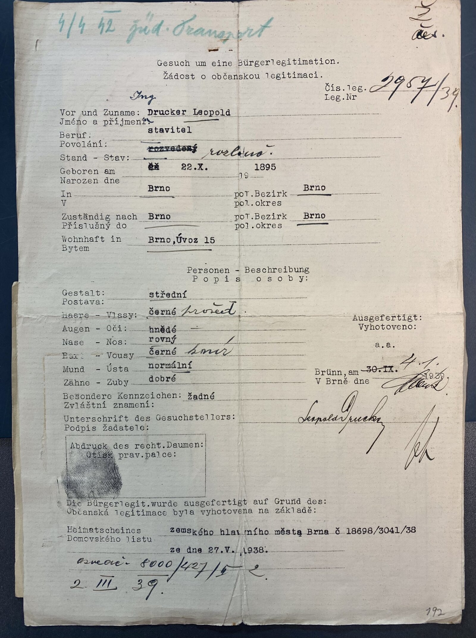 ,,Kolik je vám let?" Odpověděl jsem čtyřicet devět. ,,Řekni čtyřicet." A já jsem nechápal, co po mě chce. Tak jsem vystoupil z vagonu a zařadil se do řady mezi ostatní. Najednou stojím před SSmanem a on se ptá: ,,Kolik je ti let?" Stejná slova, která mi před chvílí řekl ten mladý vězeň. A najednou mi to došlo. Řekl jsem čtyřicet. Doktor mě zařadil do skupiny, kde stáli vybraní do práce. Kdybych tehdy řekl čtyřicet devět, šel bych do krematoria jako každý nad 45 let. Takže tento sedmnáctiletý chlapec mi tam v Osvětimi zachránil život. Jeden z mnoha zázraků mého života."Tuhle vzpomínku na svoji deportaci do Osvětimi sepsal v roce 1971 ve Spojených státech brněnský rodák a výrazný meziválečný stavitel Leopold Drucker.