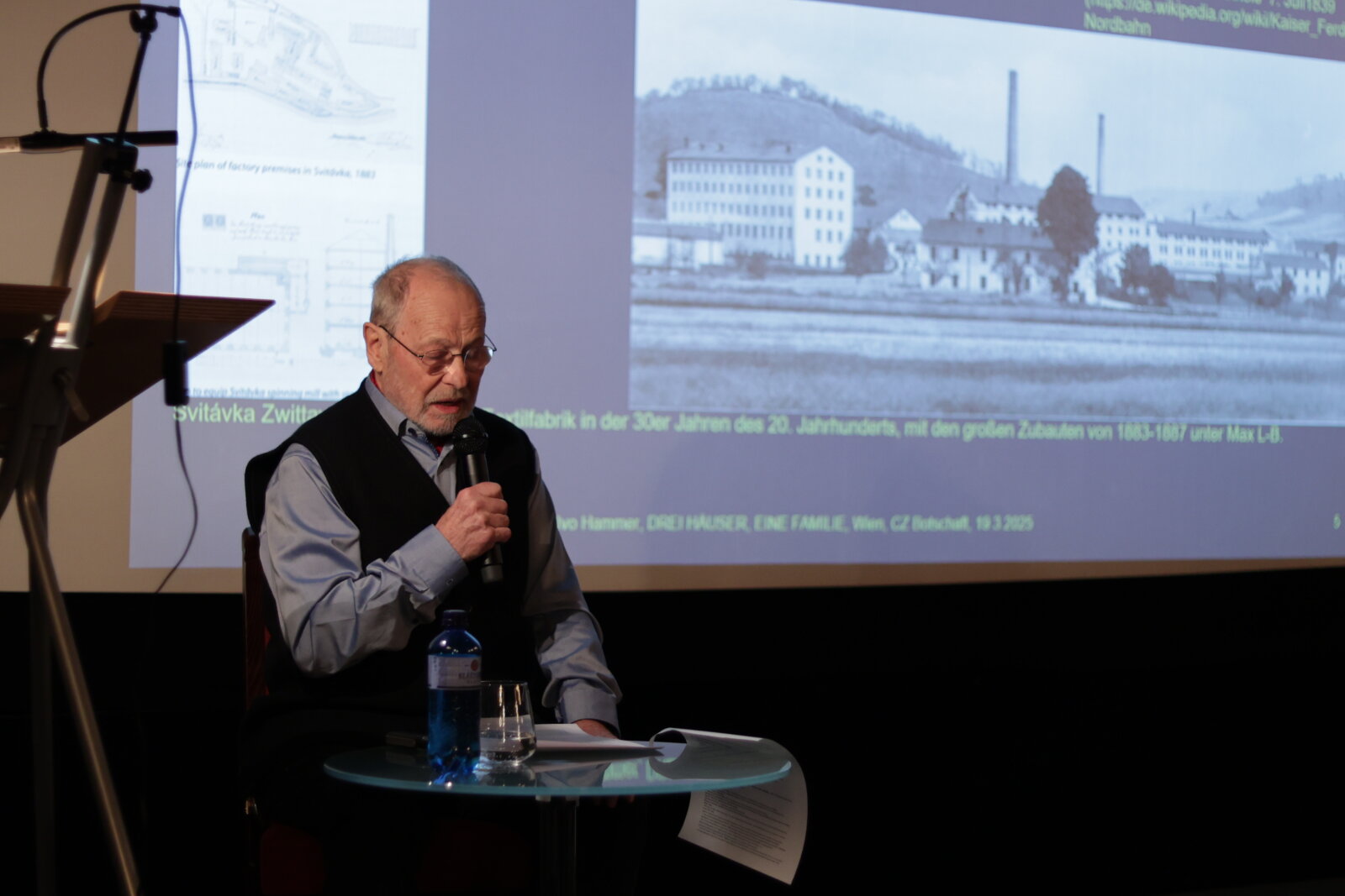 Ústřední částí večera byla prezentace Ivo Hammera-Tugendhata, historika umění, restaurátora a zetě Grete Tugendhatové, která se pod názvem „Tři vily, jedna rodina“ zaměřila na jedinečné propojení tří domů v brněnských Černých Polích – Arnoldovy, Löw-Beerovy a Tugendhatovy vily – prostřednictvím rodin Löw-Beer, Hože a Tugendhat. Jeho odborný výklad doplnila osobní reflexe, která do tématu vnesla rovinu rodinné paměti – ta se v těchto domech dodnes zrcadlí spolu s širší kulturní stopou. V publiku byla přítomna i Daniela Hammer-Tugendhat, dcera Grete Tugendhatové, jejíž účast dodala celému večeru mimořádnou hloubku a autenticitu.
