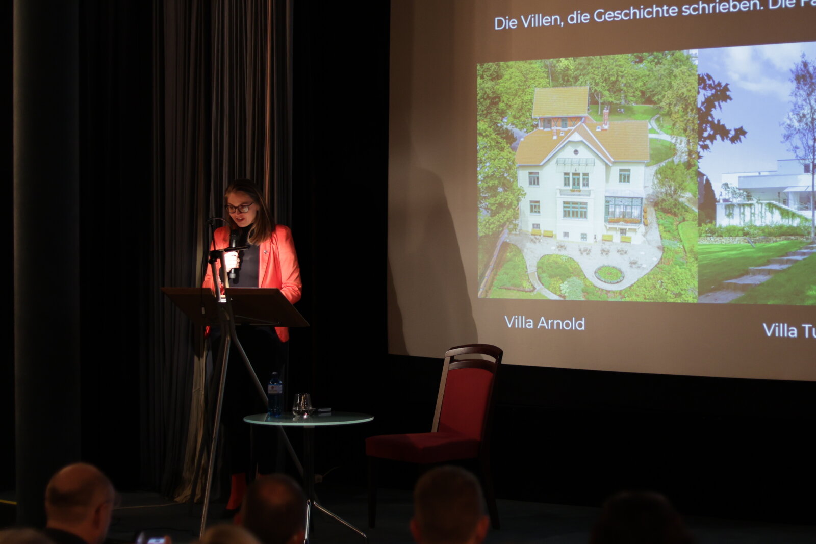 Na vystoupení Iva Hammera-Tugendhata navázala Veronika Smyslová, vedoucí Arnoldovy vily, která představila současné využití všech tří vil jako míst, kde se propojují historie, vzdělávání a otevřený dialog se současností. Přiblížila jejich potenciál přispívat k lepšímu porozumění dějinám, kultuře a hodnotám, které jsou základem společnosti. Muzea dnes nejsou jen strážci paměti, ale také prostorem, kde se učíme vnímat souvislosti, klást otázky a nacházet cestu ke společnému porozumění. Právě tímto směrem směřuje činnost Centra dialogu v Arnoldově vile, jehož program se věnuje tématům paměti, svobody a občanské odpovědnosti, nebo například výstava Humor bez legrace ve vile Löw-Beer, která se zabývá antisemitismem v dobových karikaturách a jejich přesahem do současnosti. V tomto kontextu zmínila i pokládání Kamenů zmizelých rodinám Hože-Tugendhat-Löw-Beer, které připomínají konkrétní osudy původních obyvatel těchto domů a vracejí jejich příběhy do dnešního veřejného prostoru.