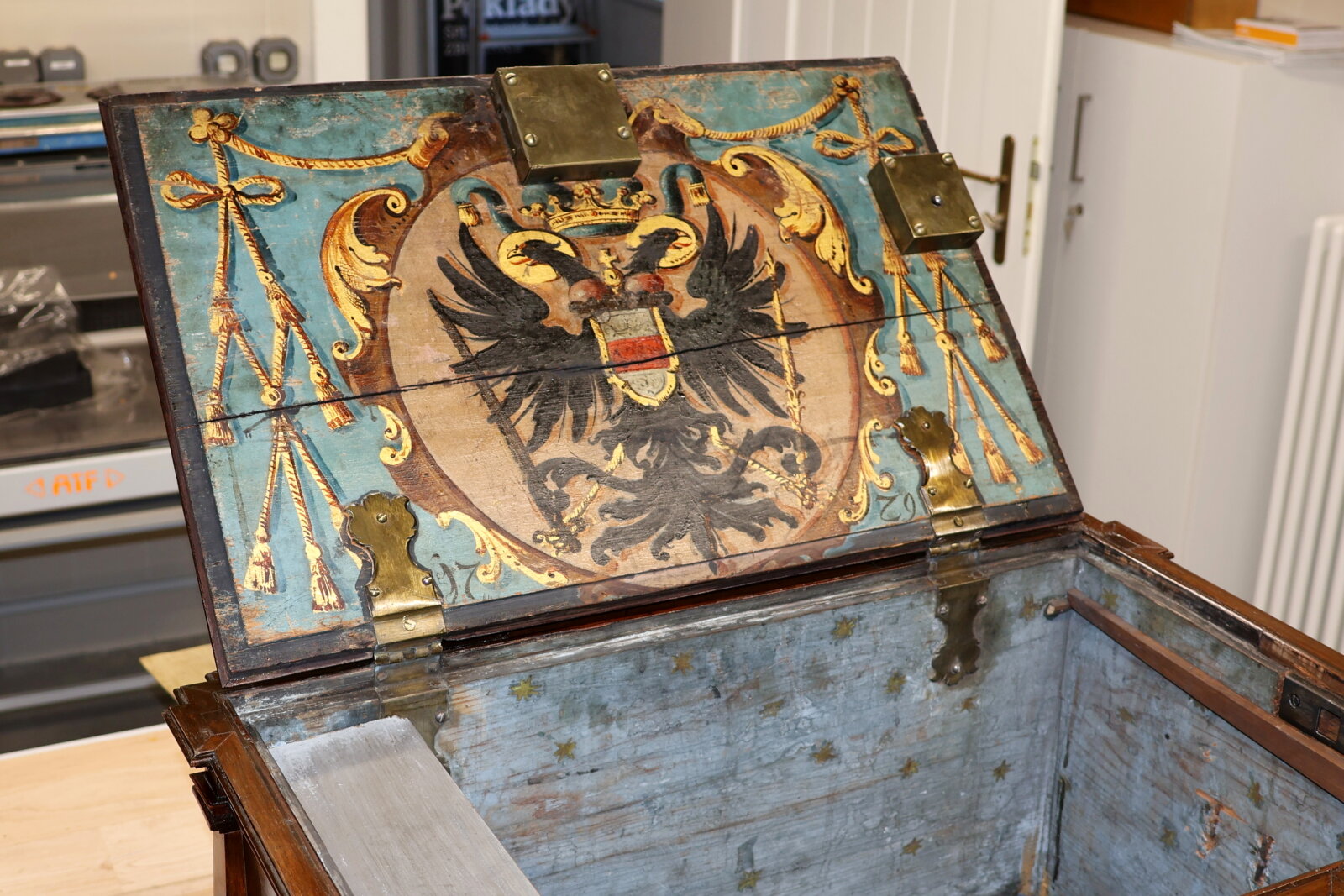 Po dlouhém vyhmatávání vnitřku zámku jsme nakonec vyrobili klíč a světe div se, truhlice se otevřela. Byla sice prázdná, ale víko pěkně malované, skryté po dlouhou dobu lidskému zraku. A po opravě a restaurování může opět reprezentovat své původní majitele v muzejních sbírkách vnějškem i vnitřkem.